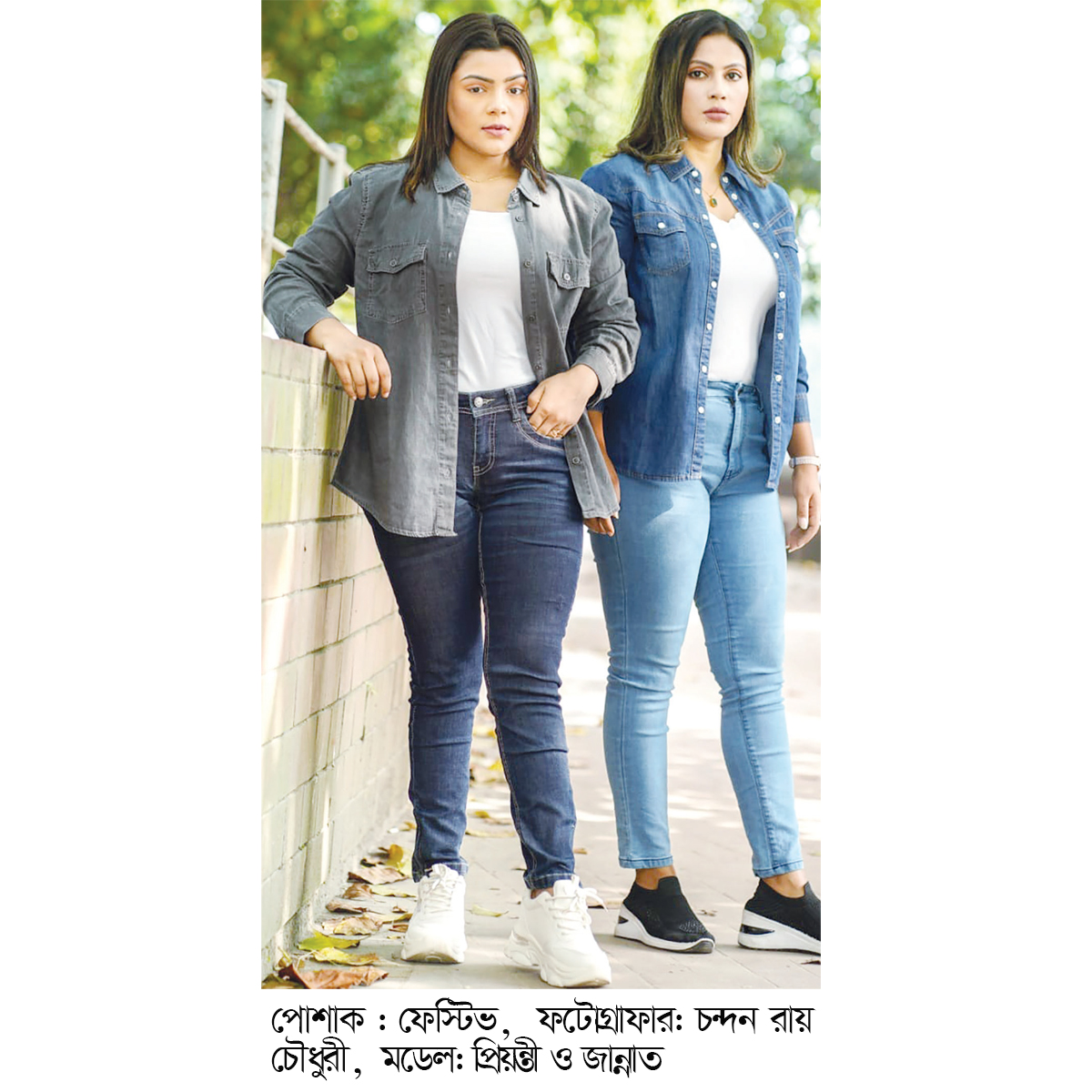 ডেনিম শার্ট এবং কো-অর্ড সেটস : ডেনিম শার্টের সাথেই এখন মেলে ডেনিম প্যান্ট বা শর্টস, যা একটি ইউনিফাইড লুক তৈরি করে। কো-অর্ড সেটস পার্টি এবং ক্যাজুয়াল আউটিংয়ের জন্য বেশ মানানসই।