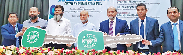 সামাজিক দায়বদ্ধতার অংশ হিসেবে পূবালী ব্যাংক পিএলসি উপহারস্বরূপ বাংলাদেশ কৃষি বিশ্ববিদ্যালয়কে দুইটি মাইক্রোবাস প্রদান করেছে। এ উপলক্ষ্যে আয়োজিত অনুষ্ঠানের প্রধান অতিথি পূবালী ব্যাংকের ব্যবস্থাপনা পরিচালক ও সিইও মোহাম্মদ আলী বাংলাদেশ কৃষি বিশ্ববিদ্যালয়ের ভাইস-চ্যান্সেলর অধ্যাপক ড. একে ফজলুল হক ভূঁইয়ার নিকট আনুষ্ঠানিকভাবে মাইক্রোবাসের চাবি হস্তান্তর করেন। সূত্র : সংবাদ বিজ্ঞপ্তি