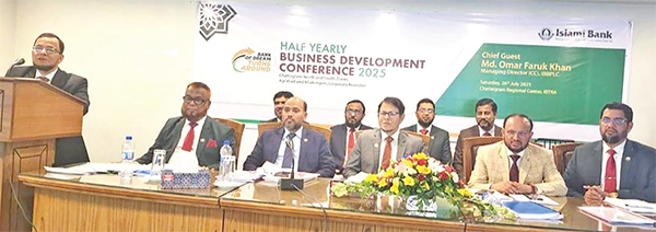 ইসলামী ব্যাংক বাংলাদেশ পিএলসির চট্টগ্রাম উত্তর ও দক্ষিণ জোন এবং ২টি কর্পোরেট শাখার অর্ধ-বার্ষিক ব্যবসায় উন্নয়ন সম্মেলন গত শনিবার ব্যাংকের চট্টগ্রাম আইবিটিআরএ-এর রিজিওনাল সেন্টারে অনুষ্ঠিত হয়েছে। ব্যাংকের ম্যানেজিং ডাইরেক্টর (চলতি দায়িত্ব) মো. ওমর ফারুক খান সম্মেলনে প্রধান অতিথি হিসেবে বক্তব্য দেন। বিশেষ অতিথি হিসেবে বক্তব্য দেন ডেপুটি ম্যানেজিং ডাইরেক্টর মাহমুদুর রহমান ও ড. এম কামাল উদ্দীন জসীম এবং এক্সিকিউটিভ ভাইস প্রেসিডেন্ট মোহাম্মদ নূরুল হক। চট্টগ্রাম দক্ষিণ জোনপ্রধান মো. আবদুর রব মৃধার সভাপতিত্বে সম্মেলনে স্বাগত বক্তব্য দেন, চট্টগ্রাম উত্তর জোনপ্রধান শহীদুল্লাহ মজুমদার। সম্মেলনে জোনদ্বয়ের অধীন শাখাসমূহের প্রধান, ২টি কর্পোরেট শাখার প্রধান এবং প্রধান কার্যালয়ের নির্বাহী ও কর্মকর্তারা অংশগ্রহণ করেন। সূত্র : সংবাদ বিজ্ঞপ্তি
