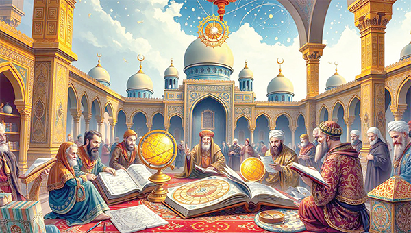 জ্যোতির্বিজ্ঞান : পবিত্র কোরআনের বিভিন্ন সুরায় জ্যোতির্বিজ্ঞানের কথা রয়েছে। কোরআনে সৌরজগত ও গ্রহ-নক্ষত্রের গতি পরিক্রমা সম্পর্কে যে বিস্ময়কর তথ্য রয়েছে, তা ১৪০০ বছরের জ্যোতির্বিজ্ঞানীরা মাথা নিচু করে মেনে নিয়েছে। বিখ্যাত মুসলিম জ্যোতির্বিজ্ঞানী আল-মাইমুন গ্রহের তির্যক গতি আবিষ্কার করেন। বায়ুমণ্ডলের পরিবর্তন সংক্রান্ত তথ্য আবিষ্কার করেন মহান জ্যোতির্বিদ আবুল হাসা। তিনি তার রচিত ‘সহিফায়ে জারকালিয়া’ বইয়ের মাধ্যমে জ্যোতির্বিজ্ঞানকে ব্যবহারিক পর্যায়ে নিয়ে যান। আল-ফারাবি প্রথম এ্যাস্ট্রোল্যাব আবিষ্কার করেন। মুহাম্মদ ইবনে মুসা এ্যাস্ট্রোল্যাব ও এ্যাস্ট্রোল্যাব তৈরির বিষয়ে দুটি গ্রন্থ লিখেন। জাবের ইবনে সিনান মান নির্ণয়ের যন্ত্র আবিষ্কার করেন। আলি ইবনে ঈসা আল-উস্তরলাবি সর্বনিম্ন দূরত্বের পরিমাপের যন্ত্র আবিষ্কার করেন।