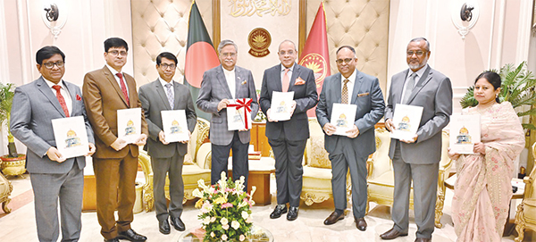 রাষ্ট্রপতি মো. সাহাবুদ্দিনের কাছে সুপ্রিম কোর্টের ‘বার্ষিক প্রতিবেদন ২০২৪’ পেশ করা হয়েছে। প্রধান বিচারপতি সৈয়দ রেফাত আহমেদের নেতৃত্বে এই বার্ষিক প্রতিবেদন প্রস্তুত সংক্রান্ত জাজেস কমিটির সদস্যরা গতকাল সোমবার বঙ্গভবনে রাষ্ট্রপতির কাছে এই প্রতিবেদন পেশ করেন। সুপ্রিম কোর্টের গণসংযোগ কর্মকর্তা মো. শফিকুল ইসলামের সই করা এক সংবাদ বিজ্ঞপ্তিতে এ তথ্য জানানো হয়েছে। বিজ্ঞপ্তিতে বলা হয়, সাক্ষাতের সময় প্রধান বিচারপতির সঙ্গে বার্ষিক প্রতিবেদন প্রস্তুত সংক্রান্ত জাজেস কমিটির চেয়ারম্যান আপিল বিভাগের বিচারপতি মো. আশফাকুল ইসলাম, কমিটির সদস্য আপিল বিভাগের বিচারপতি একেএম আসাদুজ্জামান এবং হাইকোর্ট বিভাগের বিচারপতি কেএম হাফিজুল আলম, বিচারপতি কাজী জিনাত হক, বিচারপতি মো. বজলুর রহমান ও বিচারপতি মো. বশির উল্লাহ উপস্থিত ছিলেন। সাক্ষাতে কমিটির সদস্যরা বার্ষিক প্রতিবেদনের বিভিন্ন দিক সম্পর্কে রাষ্ট্রপতিকে অবহিত করেন। সূত্র: সংবাদ বিজ্ঞপ্তি
