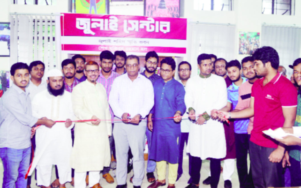 ঐতিহাসিক গণ-অভ্যুত্থানের চেতনা ধারণ ও উদযাপনের অংশ হিসেবে ঢাকা বিশ্ববিদ্যালয়ে ‘জুলাই সেন্টার’ এর উদ্বোধন ও তথ্যচিত্র প্রদর্শনের আয়োজন করা হয়। বিশ্ববিদ্যালয়ের শেখ মুজিবুর রহমান হলের জুলাই শহিদ স্মৃতি ভবনে এই জুলাই সেন্টারের উদ্বোধন করা হয়। জুলাই গণ-অভ্যুত্থানকে উপজীব্য করে ঢাকা বিশ্ববিদ্যালয়ের হলভিত্তিক প্রথম কোনো সেন্টার এটি। গত সোমবার এ উপলক্ষে আয়োজিত অনুষ্ঠানে প্রধান অতিথি ছিলেন, ঢাকা বিশ্ববিদ্যালয়ের প্রো-ভাইস চ্যান্সেলর (শিক্ষা) অধ্যাপক ড. মামুন আহমেদ। সভাপতিত্ব করেন, শেখ মুজিবুর রহমান হলের প্রাধ্যক্ষ অধ্যাপক ড. মো. আখতারুজ্জামান। অনুষ্ঠান সঞ্চালনা করেন, গণযোগাযোগ ও সাংবাদিকতা বিভাগের সহযোগী অধ্যাপক ড. খোরশেদ আলম। সূত্র : সংবাদ বিজ্ঞপ্তি