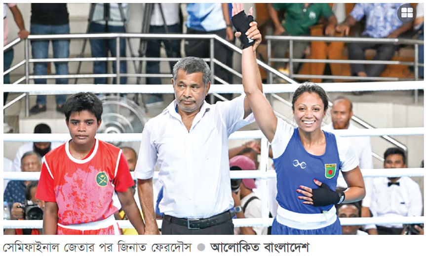 জাতীয় বক্সিংয়ের আগ্রহের কেন্দ্রবিন্দুতে যুক্তরাষ্ট্র প্রবাসী বক্সার জিনাত ফেরদৌস। তার সঙ্গে আলো কেড়েছেন বাংলাদেশের নারী ফুটবল দলের তারকা আফঈদা খন্দকারের বোন আফরা খন্দকার প্রাপ্তি। জাতীয় বক্সিংয়ের ফাইনালে দেখ হতে যাচ্ছে এই দুই বক্সারের। ৫২ কেজি ওজন শ্রেণিতে নিজ নিজ ম্যাচে জয় লাভ করে ফাইনাল নিশ্চিত করেছেন এই দুই বক্সার। ৫২ কেজি ওজন শ্রেণিতে প্রতিযোগী মাত্র ছয়জন হওয়ায় ‘বাই’ পেয়ে সরাসরি সেমি-ফাইনালে খেলার সুযোগ পান জিনাত। মোহাম্মদ আলী বক্সিং স্টেডিয়ামে গতকাল মঙ্গলবার ফাইনালে ওঠার লড়াইয়ে তিনি সহজে হারিয়ে দেন আয়শা খাতুনকে। আরেক সেমিফাইনালে বাংলাদেশ আনসারের আফরা খন্দকার, তূর্য বক্সিং ক্লাবের অন্তরা আক্তার বৃষ্টিকে পরাজিত করেন।