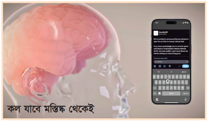 ইলন মাস্কের নতুন প্রযুক্তি : নিউরালিঙ্ক কোম্পানির সিইও তিনি, এই কোম্পানি ব্রেন চিপ প্রযুক্তির উপর কাজ শুরু করেছে। এতদিন সায়েন্স ফিকশন ছবিগুলোতে যা দেখা গিয়েছে, তা এবার বাস্তবে করতে চলেছেন তিনি। যদিও ইতিমধ্যে সফল একটি ট্রান্সপ্ল্যান্ট করেছে নিউরালিঙ্ক। এক্স প্ল্যাটফর্মে নিজের একটি এআই জেনারেটেড ছবি পোস্ট করছেন তিনি। ছবি থেকে বোঝা যাচ্ছে, ফোনের মতো মস্তিষ্ক থেকে নিয়ন্ত্রণ হবে সবকিছু। এই পোস্টে তিনি নিউরালিঙ্ক ইন্টারফেস এবং এক্স ফোনের কথা বলেছেন। অর্থাৎ আগামীদিনে এই সংক্রান্ত কিছু করার পরিকল্পনা, তার থাকলেও থাকতে পারে। এমনিতে খামখেয়ালি মন্তব্যের জন্য সোশ্যাল মিডিয়ায় চর্চায় থাকেন ইলন মাস্ক। তিনি বলেন, ইউজার এবার থেকে ভাবনা দিয়েই স্মার্টফোন নিয়ন্ত্রণ করতে পারবেন। আরও একটি পোস্টে তিনি জানিয়েছে, ভবিষ্যতে ফোনের দরকার পড়বে না। আপনি শুধু নিউরালিঙ্ক দেখতে পাবেন।