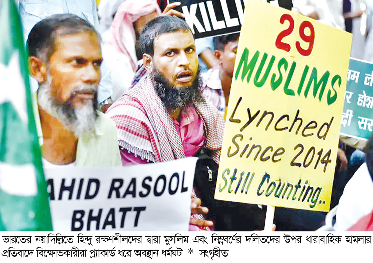 গাড়িতে বিফ বা গরুর মাংস বহন করা হচ্ছে, এ সন্দেহে ভারতের উত্তরপ্রদেশে চারজন মুসলিম যুবককে নির্মমভাবে পিটিয়ে জখম করেছে সেখানকার তথাকথিত গোরক্ষক বাহিনীর লোকজন। আহত চারজনের মধ্যে তিনজনের অবস্থাই অত্যন্ত আশঙ্কাজনক। ঘটনাটি ঘটেছে শনিবার ২৪ মে সকালে, রাজ্যের আলিগড় জেলায়। আহত যুবকরাও ওই জেলার আটরাউলি শহরের বাসিন্দা। জেলা পুলিশ সূত্রে তাদের নাম আরবাজ, আকিল, কাদিম ও মুন্না খান বলে জানানো হয়েছে। এদিকে ওই যুবকদের ওপর অকথ্য নির্যাতনের একাধিক ভিডিও সোশ্যাল মিডিয়াতে ছড়িয়ে পড়েছে। যাতে দেখা যাচ্ছে, হামলাকারীরা তাদের জামাকাপড় খুলে নিয়ে প্রায় নগ্ন করে পেটাচ্ছে। মারধর করার সময় কাস্তে বা কাটারির মতো ধারালো অস্ত্রশস্ত্র, লাঠিসোঁটা, রড এবং ইটও ব্যবহার করা হয়েছে। আহত যুবকদের একজন আকিলের বাবা সালিম খান স্থানীয় সংবাদমাধ্যমকে বলেন, ‘ভিডিও দেখলেই বুঝবেন, কীভাবে ওদের মারা হয়েছে। আমার সেটা বর্ণনা করার ভাষা নেই।’ আকিল এখন আলিগড় হাসপাতালে মৃত্যুর সঙ্গে লড়ছে বলে জানান তিনি। হামলার ঘটনা যে ঘটেছে, তার সত্যতা নিশ্চিত করা হয়েছে আলিগড় পুলিশের পক্ষ থেকেও। তবে তারা এখনও কাউকে গ্রেপ্তার করেনি। গাড়িতে যে মাংস ছিল, তার নমুনা সংগ্রহ করে সেটি কীসের মাংস, তা পরীক্ষা করাসহ সব অভিযোগের তদন্ত করা হবে বলে আশ্বাস দিয়েছে।