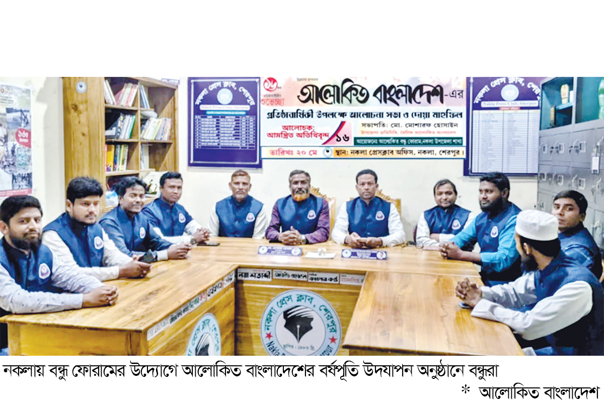 উন্নয়নের মূলধারার অঙ্গীকারে মুক্ত ও স্বাধীন সংবাদ চর্চার মাধ্যমে দেশ ও জাতির সেবা দানের লক্ষে বস্তুনিষ্ঠ ও সাহসিকতার সহিত খবর প্রকাশের উজ্জ্বল দৃষ্টান্ত দেশের শীর্ষস্থানীয় দৈনিক আলোকিত বাংলাদেশ পত্রিকার ১৬তম বর্ষে পদার্পণ তথা ১৫তম বর্ষপূর্তি উদযাপন উপলক্ষ্যে শেরপুরের নকলায় আলোকিত বন্ধু ফোরামের উদ্যোগে ও আয়োজনে আলোচনা সভা, কেক কাটা ও দোয়া মাহফিল অনুষ্ঠিত হয়েছে। নকলা প্রেস ক্লাবের অফিস কক্ষে পত্রিকাটির উপজেলা প্রতিনিধি ও নকলা প্রেস ক্লাবের সভাপতি মো. মোশারফ হোসাইন-এর সভাপতিত্বে এসব অনুষ্ঠিত হয়। অনুষ্ঠানের শুরুতেই বিভিন্ন সাংবাদিক সংগঠনের নেতৃবৃন্দসহ স্থানীয় সাংবাদিক ও বিভিন্ন পেশাশ্রেণির জনগণ শুভেচ্ছা জানান। পরে উপস্থিত সুধীজনদের শুভেচ্ছা বক্তৃতা শেষে আলোচনা সভা অনুষ্ঠিত হয়। নকলা প্রেস ক্লাবের সাংগঠনিক সম্পাদক নূর হোসেনের সঞ্চালনায় সভায় বক্তব্য রাখেন, ক্লাবের সিনিয়র সহ-সভাপতি খন্দকার জসিম উদ্দিন মিন্টু, সাধারণ সম্পাদক মোশাররফ হোসেন সরকার বাবু, যুগ্ম সাধারণ সম্পাদক দেলোয়ার হোসেন, সাংগঠনিক সম্পাদক ফজলে রাব্বী রাজন, দপ্তর সম্পাদক সেলিম রেজা, দৈনিক যায়যায়দিন’র সাংবাদিক শফিউল আলম লাভলু, প্রেস ক্লাবের সাহিত্য ও সাংস্কৃতিক সম্পাদক মাজহারুল ইসলাম লালন, কোষাধ্যক্ষ আব্দুল্লাহ আল-আমিন, কল্যাণ তহবিলবিষয়ক সম্পাদক নাহিদুল হাসান নাহিদ ও প্রচার প্রকাশনা সম্পাদক নাহিদুল ইসলাম রিজন প্রমুখ। বক্তারা বলেন, আলোকিত বাংলাদেশে কর্মরত সাংবাদিকবৃন্দ পেশাদারিত্বের সঙ্গে বস্তুনিষ্ঠ সংবাদ পরিবেশনের মাধ্যমে জনমনে স্থান করে নিয়েছে। একটি পত্রিকা নিরবচ্ছিন্নভাবে ১৬টি বছর অতিক্রম করা সহজ বিষয় নয়। যাদের হাতে এই পত্রিকা সৃষ্টি হয়েছে তারা শুধু নিজেদের পত্রিকা ও সংশ্লিষ্ট জনগোষ্ঠীকে আলোকিত করার লক্ষ্যে নয়, বরং পুরো বাংলাদেশকে আলোকিত করার জন্য নিরলস কাজ করে যাচ্ছেন। তারা আরও বলেন, বিভিন্ন সময় বাংলাদেশে ঘটে যাওয়া নানান প্রেক্ষাপটে এই মিডিয়া হাউসে যে সকল প্রতিবন্ধকতার সৃষ্টি হয়েছিল, তা সাহসিকতার সহিত খবরের মাধ্যমে মোকাবিলা করে সামনের দিকে দ্রুত এগিয়ে চলছে। দেশবাসীর কাছে খবর সংশ্লিষ্ট বিশ্বাসের আরেক নাম যেন দৈনিক আলোকিত বাংলাদেশ। ভবিষ্যতে এই ধারা অব্যাহত থাকবে বলে তারা আশা ব্যক্ত করেন।