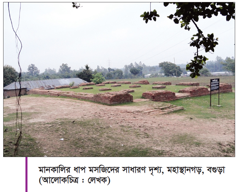 পনেরো গুম্বুজের ধ্বংসপ্রায় মসজিদটি বগুড়া জেলার শিবগঞ্জ উপজেলার মহাস্থানগড়ে করতোয়া নদীর পাড়ে অবস্থিত। এটি মানকালির কুণ্ড নামে পুকুরের পশ্চিম পাড়ে একটি পুরোনো ঢিবির ওপর অবস্থিত। ঢিবির অভ্যন্তরে পূর্ববর্তী কোনো স্থাপনা থাকতে পারে। এ স্থানে একটি অসমাপ্ত জৈন মূর্তি পাওয়া যায়। মূর্তিটি বর্তমানে রাজশাহী বরেন্দ্র গবেষণা জাদুঘরে রক্ষিত আছে। কানিংহাম এখানে প্রাচীন নাগরী লিপিতে উৎকীর্ণ একটি শিলালিপি পেয়েছিলেন। মসজিদটির উত্তর, দক্ষিণ ও পশ্চিম দিকে পরিখা রয়েছে। প্রত্নতত্ত্ব অধিদপ্তরের খননের ফলে ১৯৬৫-৬৬ সালে মসজিদটি উন্মোচিত হয়। মসজিদটির পরিমাপ ২৬.২১ মি. ী ২৪.৪৯ মি.। মসজিদের অভ্যন্তরে মুক্তভাবে দণ্ডায়মান আটটি স্তম্ভ রয়েছে। আদিতে পনেরোটি গুম্বুজ দ্বারা আচ্ছাদিত থাকলেও বর্তমানে এটির ওপর কোনো গুম্বুজ নেই। মসজিদটির পুব দিকে পাঁচটি প্রবেশ-পথ এবং উত্তর ও দক্ষিণ দিকে তিনটি করে প্রবেশ-পথ আছে। পুব দিকের প্রবেশ-পথের সোজাসুজি কিবলা দেওয়ালে পাঁচটি মিহরাব আছে। কেন্দ্রীয় মিহরাবটি বাইরের দিকে উদ্গত। কেন্দ্রীয় মিহরাবের পার্শ্বে একটি মিম্বর (শুক্রবারে ইমামের খুৎবা দেওয়ার স্থান) আছে। উত্তর-পশ্চিম কোনায় একটি জেনানা গ্যালারি (মহিলাদের নামাজ পড়ার স্থান) ছিল বলেও অনুমান করা হয়।