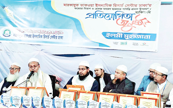 ঢাকার ঐতিহ্যবাহী গবেষণামূলক ধর্মীয় শিক্ষাপ্রতিষ্ঠান মারকাযুত তাকওয়া ইসলামিক রিসার্চ সেন্টার ঢাকায় দিনব্যাপী প্রতিযোগিতা, ইলমি মুহাজারা ও আলোচনা সভা অনুষ্ঠিত হয়েছে। ১০ ফেব্রুয়ারি শনিবার মারকাজের অডিটোরিয়ামে সকাল ৮টা থেকে বিকাল ৫টা পর্যন্ত চার অধিবেশনে এ ব্যতিক্রমধর্মী আয়োজনসম্পন্ন হয়। প্রায় ৩০০ প্রতিযোগী ও পাঁচ শতাধিক উচ্চতর গবেষণার শিক্ষার্থীর উপস্থিতিতে প্রাণবন্ত এ আয়োজনে বিজয়ীদের মধ্যে দেড় লক্ষাধিক টাকার পুরস্কার ও সম্মাননা ক্রেস্ট প্রদান করা হয়। অনুষ্ঠানে প্রধান অতিথি হিসেবে উপস্থিত ছিলেন শায়খ জাকারিয়া ইসলামিক রিসার্চ সেন্টার ঢাকার পরিচালক মুফতি মিজানুর রহমান সাঈদ। বিশেষ অতিথি হিসেবে ছিলেন আলহাজ আবদুর রহমান, জামিয়াতুস সুন্নাহ মাদারীপুরের মুহতামিম মাওলানা নিয়ামতুল্লাহ আল ফরিদি, লেখক ও গবেষক মাওলানা গাজী আতাউর রহমান, মুফতি শামসুদ্দোহা আশরাফি, কবি সাইফ সিরাজ, মুফতি শরিফ মালিক, দৈনিক যুগান্তরের সহ-সম্পাদক তোফায়েল গাজালি, দৈনিক আলোকিত বাংলাদেশের সহ-সম্পাদক মুনশি মুহাম্মদ উবাইদুল্লাহ, রাহনুমা প্রকাশনীর সম্পাদক মুফতি আশরাফুল হক প্রমুখ।