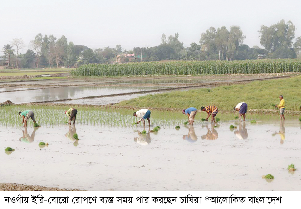 উত্তরের জেলা নওগাঁয় ইরি-বোরো রোপণে ব্যস্ত সময় পার করছেন চাষিরা। গত বছরের লোকসানের বোঝা মাথায় নিয়ে এবার নতুন উদ্যোমে চলছে চাষাবাদ। তবে শীতের ঠান্ডা ও কুয়াশায় কিছুটা বিড়ম্বনায় পড়তে হচ্ছে শ্রমিক ও চাষিদের। এ বছর আবহাওয়া ভালো থাকলে ফসল ঘরে তুলতে পারবেন তারা। যেহেতু ফসল উৎপাদন খরচ বেড়েছে। বাজারে ধানের দাম ভালো থাকলে কৃষকও লাভবান হবেন, এমন আশাবাদী তারা।