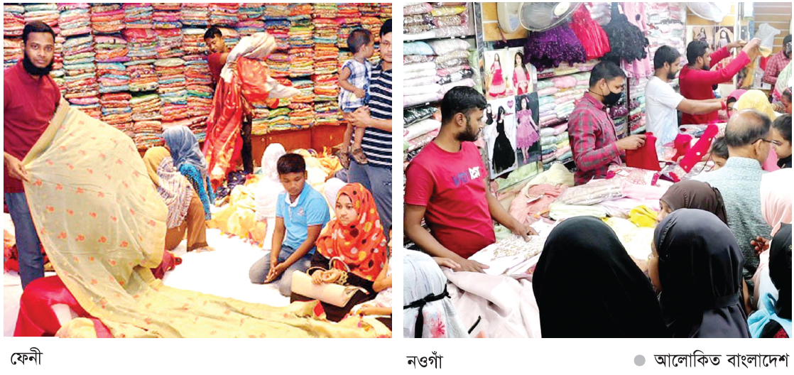 আসন্ন ঈদুল ফিতর উপলক্ষ্যে জেলা ও উপজেলার নামি-দামি ফ্যাশন হাউজ ও শপিংমলগুলোর পাশাপাশি মার্কেট ও ছোট বড় শপিং দোকানে বাড়ছে ক্রেতা সমাগম। দোকানগুলোতে দিনে ও রাতে উপচেপড়া ভিড় বাড়ছে। প্রতিনিধিদের পাঠানো খবর-