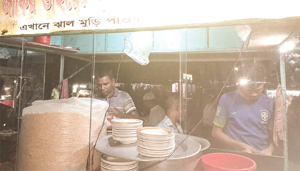 কাঁচামরিচ, পেঁয়াজ কুচি মসলা আর আচারের সঙ্গে মচমচে মুড়ি দিয়ে তৈরি হচ্ছে মজাদার ঝাল মুড়ি মাখা। চারপাশ থেকে ঘিরে আছে ক্রেতারা। সিরিয়ালে থেকে নিতে হচ্ছে মুড়ি। শরীয়তপুর শহরের শিল্পকলা মাঠে ভ্রাম্যমাণ এক দোকানে এভাবে বিক্রি হচ্ছে জাকির ভাইয়ের সুস্বাদু ঝাল মুড়ি। এই শিল্পকলা মাঠ শহরের বিনোদনের অন্যতম স্থান। প্রতিদিন এই মাঠে হাজার হাজার মানুষের জনসমাগম ঘটে। ছুটির দিনগুলোতে ভিড় বেড়ে যায় কয়েক গুণ। এই মাঠে রয়েছে ছোট বড় অনেক ধরনের খাবারের দোকান। তার মধ্যে সবার প্রিয় জাকির ভাইয়ের সুস্বাদু ঝাল মুড়ি। এই মুড়ির স্বাদ দ্বিগুণ বাড়িয়ে বড়ই আচার। জাকির বড়ইয়ের মৌসুমে আচার বানিয়ে রেখে দেন। এরপর সেই আচার দিয়ে সারা বছর মুড়ি বিক্রি করেন। জেলা ও জেলার বাইরে থেকে জাকির তার মুড়ি খেতে এসে লাইনে থাকতে হয় ক্রেতাদের। প্রতি প্লেট মুড়ি রাখেন বিশ টাকা। প্রতিদিন বিকেল ৫টা থেকে রাত ১০টা পর্যন্ত চলে এই বেচাকেনা। এর আগে শহরের সরকারি বালিকা উচ্চ বিদ্যালয়ের সামনে দিনে বেচাকেনা করেন তিনি। আর যে দিনগুলোতে স্কুল প্রতিষ্ঠান বন্ধ থাকে সেই দিন শিল্পকলায় তাড়াতাড়ি দোকান খোলেন। জাকির হোসেন শহরের বড়াইল গ্রামের বাসিন্দা। তিনি সদর হাসপাতালের অপর পাশে শিল্পকলা মাঠে ভ্যান গাড়ির ওপরে ঝাল মুড়ি বিক্রি করেন। তিনি সকালে ও বিকেলে দুইবেলা মুড়ি বিক্রি করেন তিনি। শুধু বিকেল বেলায় শিল্পকলা মাঠে তার বেচাকেনা হয় লাখ টাকার ওপরে। আর সারাদিন হিসাব করলে দিন শেষে মাস গড়িয়ে প্রায় ২ লাখ টাকার ওপরে বেচাকেনা হয় তার দোকানে। জাকির হোসেন বলেন, আমি আগে আচার বিক্রি করতাম, ৭ বছর ধরে এই মুড়ি বিক্রি করছি। এখন আমার এই ঝালমুড়ির ব্যবসা এতই জমজমাট যে, ক্রেতাদের চাহিদা মেটাতে হিমশিম খেতে হয়। উৎসবের দিনগুলোতে চাপ বেড়ে যায়। ৫০ হাজার টাকা পুঁজি নিয়ে এই ব্যবসা শুরু করেছিলাম। এখন প্রতিদিন আমি ৮ থেকে ১০ হাজার টাকা বিক্রি করি। জাকির জানান, স্ত্রী-সংসার নিয়ে এখন বেশ সুখেই আছেন। তার ২ মেয়ে ও এক ছেলে। বড়ো মেয়েটা এবার ক্লাস ফোরে পড়ে। এই পেশার আয় দিয়ে তিনি ছেলে-মেয়েকে পড়াচ্ছেন। জাকির বলেন, আমার প্রতিদিন খুব ভালো বেচাকেনা হয়। এমন সময় আসে, যখন আমি লোক সামলাতে হিমসিম খাই। আমার এই দোকান ঘিরে চারজনের কর্মসংস্থানের ব্যবস্থা হয়েছে, যাদের প্রত্যেককে খাওয়া-দাওয়াসহ ৫০০ টাকা দিন প্রতি দিতে হয়। কিন্তু মুড়ি আমাকেই তৈরি করতে হয়। আমার দুই বেলা দোকানের হিসেব করলে দৈনিক করে ৮ থেকে ১০ হাজার টাকা বিক্রি হয়। তবে শুধু বিকেলে হিসেব করলে মাসে ৮০ হাজার থেকে ১ লাখ টাকা হয়। তবে বিকেল থেকে সকালে বেচাবিক্রি বেশি হয়।