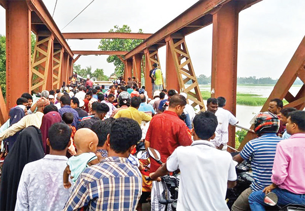 ভাঙনরোধে বাঁধ নির্মাণের দাবিতে মানববন্ধন