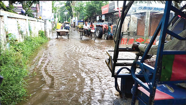সামান্য একটু বৃষ্টি হলেই উপজেলা কার্যালয় ও থানার মূল ফটকসহ উপজেলা স্বাস্থ্যকমপ্লেক্স যাতায়াতের সড়কটি পানিতে তলিয়ে যায়। মুন্সীগঞ্জের শ্রীনগর উপজেলা শহর থেকে উপজেলা স্বাস্থ্য কমপ্লেক্সগামী সড়কটি সংস্কার কাজের পরে সড়কে পানি নিষ্কাশনের ব্যবস্থা না থাকায় এবং সড়কের মাঝখান উঁচু ও দুই পাশ ঢালু হওয়ার কারণে এমন জলাবদ্ধতার সৃষ্টি হয়েছে বলে মনে করছেন সড়কে যাতায়াতকারীরা। গত কয়েক দিনের টানা বৃষ্টিতে শ্রীনগর চকবাজার হতে উপজেলা স্বাস্থ্য কমপ্লেক্সগামী সড়কটি বৃষ্টির পানিতে তলিয়ে যায়। সড়ক ও জনপথের এই আঞ্চলিক সড়কটির শ্রীনগর উপজেলা কার্যালয়ের মূল ফটক ও শ্রীনগর থানার মূল ফটকসহ কোথাও কোথাও জমে ছিল ১ থেকে দেড় ফুট পানি। ফলে এলাকাবাসী উপজেলা স্বাস্থ্য কমপ্লেক্সে ও উপজেলার মূল শহরে যাতায়াতে চরম দুর্ভোগ পোহাতে হচ্ছে। সরেজমিন গিয়ে দেখা যায়, সড়কের শ্রীনগর থানা ও উপজেলার মূল ফটক, গোল্ডেন সিটি রিক অফিস ও দিলরুবা ক্লিনিকের সামনে সড়কের মাঝে ও দুই পাশে জমে থাকা কাদা পানিতে মিলেমিশে একাকার। স্থানীয় মানুষদের এই নোংরা পানির মধ্য দিয়ে চলাচল করতে হচ্ছে। উপজেলা কার্যালয়, থানা ও স্বাস্থ্য কমপ্লেক্স এই তিনটি মানুষের অত্যন্ত গুরুত্বপূর্ণ স্থান। থানা ও উপজেলা এ দুটি কার্য্যালয়ের প্রবেশদ্বারে হাঁটু পর্যন্ত পানি এবং সড়কে খানাখান্দে ভরে গেছে। সড়কটির দুই পাশে কাদা পানিতে তলিয়ে যাওয়ায় এবং বিকল্প কোন সড়ক না থাকায় পথচারীরা বাধ্য হয়ে এই সড়কটিতে যাতায়াত করতে হচ্ছে। থানায় অভিযোগ করতে আসা শুভ বলেন, থানার সামনে রাস্তায় এত পরিমান পানি যে, ভিতরে হেটে যাওয়ার উপায় নেই। হেটে গেলে পরণের প্যান্ট হাঁটুর উপরে তুলে তার পর যেতে হয়। এটা আমাদের জন্য একটা ভোগান্তি, সড়কটি সংস্কারের সময় একটি ড্রেনের ব্যবস্থা করা উচিত ছিল। প্রতিবেদনের জন্য ছবি তোলার সময় অটো চালক ইয়াছিন বলেন, আমরা অটোতে যাত্রী নিয়ে যাতায়াতকালে সড়কে হাঁটু পর্যন্ত পানির কারণে আমাদের গাড়ির ক্ষতি হয় এবং রাস্তার পানিতে যাত্রীদের পড়নের কাপড়চোপড় ভিজে নস্ট হয়। আমরা খুব কষ্ট করে এই রাস্তা দিয়ে অটো চালাই। আমরা চাই জলাবদ্ধতা নিরসনে দ্রুত ড্রেনের ব্যবস্থা করা হোক। মুন্সীগঞ্জ সড়ক ও জনপথের উপ-বিভাগীয় প্রকৌশলী মো. নাজমুস সাকিব বলেন, এ ব্যাপারে খোঁজ নিয়ে দ্রুত প্রয়োজনীয় ব্যবস্থা নেয়া হবে।
