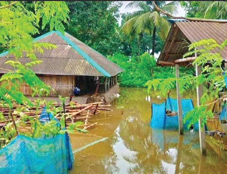 ভারি বৃষ্টিতে সাতক্ষীরা সদর ও তালা উপজেলার বিস্তীর্ণ এলাকা এখন পানিতে নিমজ্জিত। বেড়িবাঁধ সংস্কার না হওয়ায় সাতক্ষীরা পৌরসভার নয়টি ওয়ার্ড, সদরের ১০টি ইউনিয়ন ও তালা উপজেলার তিনটি ইউনিয়নের মোট ৭০টির বেশি গ্রাম প্লাবিত হয়েছে। পানিবন্দি হয়ে পড়েছে ৩০ হাজারের বেশি পরিবার। সাতক্ষীরা আবহাওয়া অফিসের ইনচার্জ জুলফিকার আলী রিপন জানায়, গত সপ্তাহের শনিবার থেকে মঙ্গলবার সকাল পর্যন্ত চার দিনে ৯৬ ঘণ্টায় ২৫৬ মিলিমিটার ও গত বুধবার ভোর থেকে বৃহষ্পতিবার পর্যন্ত ৩২ মিলিমিটার বৃষ্টিপাত রেকর্ড করা হয়েছে। তালা উপজেলার আহসাননগর সরকারি প্রাথমিক বিদ্যালয়ের শিক্ষক মিলন রহমান জানান, ভারি বৃষ্টির কারণে ১৫ সেপ্টেম্বর সদর উপজেলার বিনেরপোতা এলাকার শ্মশানঘাটের পাশের বেতনা নদীর পাউবোর রিংবাঁধ ভেঙে গিয়ে লোকালয়ে পানি ঢুকেছে। সাতক্ষীরা পৌরসভার ওয়ার্ড কাউন্সিলর মারুফ হোসেন জানান, সাতক্ষীরা পৌরসভাসহ সদর উপজেলার মধ্যকার ছাকার মোড় থেকে শাল্যে বাজার, তালতলা থেকে গোপীনাথপুর ডেইয়ের বিল, মাঠপাড়া থেকে গদাই বিল, শহরের রথখোলা সড়ক, কামানগর, মধুমোল্লারডাঙিসহ সদরের বেশ কয়েকটি সড়ক পানির নিচে। ওই সব সড়ক দিয়ে মানুষ চলাচল করতে পারেছ না। এ ছাড়া, সদর উপজেলার পুরাতন সাতক্ষীরা এলাকার ঘুড্ডেরডাঙ্গী, রামচন্দ্রপুর, লবণগোলা, পাথরঘাটা, দামারপোতা, জিয়ালা, ধুলিহর, বালুইগাছা, ফিংড়ি, ফয়জুল্লাহপুর, দরবাস্তিয়া, কোমরপুর, তেঁতুলডাঙ্গী, মাছখোলা, খেজুরডাঙ্গা, গোপীনাথপুর, গোয়ালপোতা, তালতলা, শ্যালেসহ ৪০টি গ্রাম ও পৌর এলাকার অর্ধেক এলাকায় জলাবদ্ধতা সৃষ্টি হয়েছে। এতে ২০-২৫ হাজার পরিবার পানিবন্দি হয়ে পড়েছে। ওই এলাকাসহ সাতক্ষীরার বিভিন্ন এলাকার মাছ ও কাঁকড়ার ঘের তলিয়ে গেছে। তলিয়ে গেছে পুকুর, আমন ধান ও শাক-সবজির খেত। তালা উপজেলার হরিণখোলা গ্রামের আমিনুর রহমান ও নির্মল মণ্ডল জানান, তার সতের বিঘার একটি মাছের ঘের রয়েছে। তাতে এক লাখ টাকার রুই, কাতলা ও মৃগেলসহ নানা জাতের মাছ ছাড়া হয়েছিল। সাম্প্রতিক বৃষ্টিতে ভেসে গেছে ওই ঘের। সাতক্ষীরা জেলা কৃষি সম্প্রসারণ অধিদপ্তরের উপ-পরিচালক কৃষিবিদ মো. সাইফুল ইসলাম জানান, চলতি আমন মৌসুমে গত কয়েকদিনের বৃষ্টিতে পাঁচ হাজার ৪৫২ হেক্টর জমি ক্ষতিগ্রস্ত হয়েছে। এর মধ্যে ১৪৯ হেক্টর জমির ফসল সম্পূর্ণভাবে ক্ষতিগ্রস্ত হয়েছে। যার বাজার মূল্য ৯ কোটি টাকার বেশি। কৃষিবিদ মো. সাইফুল ইসলাম বলেন, এখন আমরা এই বৃষ্টির পানিতে সৃষ্টি হওয়া জলবদ্ধতা যদি নিরসন করতে পারি, তাহলে শাকসবজি ও আগাম খাদ্যশস্য আবাদের দিকে অগ্রসর হতে পারবো। আশা করছি, আবার সাতক্ষীরা জেলা ফসল উৎপাদনে লক্ষ্যমাত্রা অনুযায়ী এগিয়ে যেতে পারবে। যদিও প্রাকৃতিক দুর্যোগ আমাদে