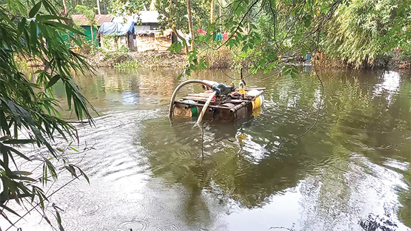 খাল থেকে অবৈধভাবে বালু উত্তোলনের অভিযোগ
