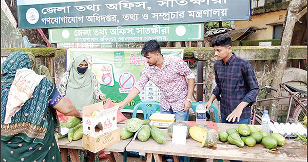 সাতক্ষীরা শহরের খুলনা রোড মোড়স্থ শহীদ আসিফ চত্বর, শহীদ আব্দুর রাজ্জাক পার্ক ও চালতেতলা বাজারে বসেছে বিনা লাভের নিত্য পণ্যের দোকান। বৈষম্যবিরোধী ছাত্র আন্দোলনের উদ্যোগে গত বুধবার ডাল, ডিম, আলু, পেঁয়াজসহ বিভিন্ন শাকসবজির এ বাজার বসানো হয়। সাতক্ষীরায় অতিবর্ষণ ও সিন্ডিকেটের কারণে শাক-সবজির দাম আকাশছোঁয়া। এ অবস্থা থেকে ক্রেতাদের স্বস্তি দিতে ডাল কেজি প্রতি ৯৯ টাকা, ডিম প্রতি পিচ ১১ টাকা, আলু কেজি প্রতি ৫৬ টাকা, সবজি কেজি প্রতি ৩৩ টাকা করে বিনালাভে নিত্যপণ্য বিক্রি করছেন বৈষম্যবিরোধী ছাত্র আন্দোলনের শিক্ষার্থীরা। তবে, অপেক্ষাকৃত কমদামে শাক-সবজিসহ নিত্যপণ্য পেয়ে খুশি ক্রেতারা। সাতক্ষীরা শহরের পলাশপোল এলাকার বাসিন্দা অ্যাডভোকেট খায়রুল বদিউজ্জামান জানান, সুলতানপুর বড় বাজারের চেয়ে এখানে প্রতিটি জিনিসের দাম কিছু না কিছু কম রয়েছে। এ জন্য ব্যাপক সাড়া পড়েছে বিনা লাভের দোকান গুলোতে। দ্রুত সময়ে সব পণ্য বিক্রি শেষ হয়ে যাচ্ছে। বৈষম্যবিরোধী ছাত্র আন্দোলনের আয়োজকরা জানান, চাষিদের কাছ থেকে সরাসরি কিনে বিনা লাভে বিক্রি করায় কমদামে বিক্রি করা যাচ্ছে। তারা আরো জানান, লুটেরা সরকারের সিন্ডিকেট এখনো ভাঙা সম্ভব হয়নি। এতে সাধারণ মানুষের খুব কষ্ট হচ্ছে। আমরা বৈষম্যবিরোধী ছাত্র আন্দোলনের উদ্যোগে বিনা লাভে ক্রেতাদের সেবা দিচ্ছি। তারা আরো জানান, সিন্ডিকেট না ভাঙা পর্যন্ত এবং দ্রব্যমূল্য স্বস্তিতে না আসা পর্যন্ত আমাদের এই কার্যক্রম চলমান থাকবে।