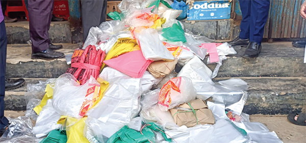 সখীপুরে আট ব্যবসায়ীকে জরিমানা, পলিথিন জব্দ