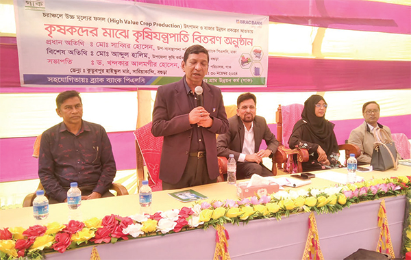 গ্রাম উন্নয়ন কর্ম (গাক) কর্তৃক বাস্তবায়নাধীন ব্র্যাক ব্যাংক পিএলসি এর আর্থিক সহায়তায় চরাঞ্চলে উচ্চ মূল্যের ফসল উৎপাদন ও বাজার উন্নয়ন শীর্ষক প্রকল্পটি বগুড়া জেলাধীন সারিয়াকান্দি ও ধুনট উপজেলার চরাঞ্চলে ২৮০০ কৃষককে সম্পৃক্ত ৪টি উচ্চ মূল্যের ফসল (ভূট্টা, মরিচ, পাট এবং সরিষা) চাষ সম্প্রসারণ এবং বাজার উন্নয়ন কার্যক্রম বাস্তবায়ন করা হচ্ছে। উক্ত প্রকল্পের আওতায় গতকাল শনিবার সকাল ১১টায় সারিয়াকান্দি উপজেলাধীন কুতুবপুর হাইস্কুল মাঠে চরাঞ্চলের ২৫০ জন কৃষকের মাঝে মরিচ শুকানোর ত্রিপল, ভূট্টার বীজ বপন মেশিন, ভূট্টা মারাই মেশিন, স্প্রে মেশিন ও শ্যালো মেশিন বিতরণ করা হয়। গাক এর প্রতিষ্ঠাতা নির্বাহী পরিচালক ড. খন্দকার আলমগীর হোসেন এর সভাপতিত্বে প্রধান অতিথির বক্তব্য রাখেন ব্র্যাক ব্যাংক পিএলসি এর উপ-ব্যবস্থাপনা পরিচালক মো. সাব্বির হোসেন। আরো উপস্থিত ছিলেন গাক এর সিনিয়র পরিচালক ড. মো. মাহবুব আলম, সারিয়াকন্দি উপজেলা কৃষি সম্প্রসারণ কর্মকর্তা মোছা. শাকিলা আকতার, ব্র্যাক ব্যাংক পিএলসি’র সিনিয়র ম্যানেজার মো. শফিকুর রহমান ভূঁইয়া, রিলেশনশীপ ম্যানেজার মো. রকিবুল হাসান, সংস্থার যুগ্ম পরিচালক মো. রবিউল ইসলাম, সারিয়াকান্দি উপজেলা উপ-সহকারী কৃষি কর্মকর্তা মো. ওমর ফারুক, প্রকল্প ব্যবস্থাপক মো. রাজিবিল্লাহ, সংশ্লিষ্ট এলাকার শাখা ব্যবস্থাপক, প্রকল্প কর্মকর্তারা, নির্বাচিত কৃষক এবং স্থানীয়/আঞ্চলিক সাংবাদিকরা। গাক এর সমন্বয়কারী মো. জিয়া উদ্দিন সরদার এর সঞ্চালনায় কৃষিযন্ত্রপাতি বিতরণ অনুষ্ঠানে প্রধান অতিথি মো. সাব্বির হোসেন সারিয়াকন্দি চর পরিদর্শনের অভিজ্ঞতা বিনিময় করেন এবং প্রকল্পের অগ্রগতি ও মরিচের বাম্পার ফলন দেখে তিনি সন্তোষ প্রকাশ করেন। সংস্থার নির্বাহী পরিচালক ড. খন্দকার আলমগীর হোসেন আধুনিক কৃষি যন্ত্রপাতির যথার্থ ব্যবহারের উপর গুরুত্বারোপ করে বলেন, শস্য উৎপাদন বৃদ্ধি করতে হলে আধুনিক কৃষি যন্ত্রপাতি ব্যবহারের কোনো বিকল্প নেই। ব্র্যাক ব্যাংকের আর্থিক সহায়তায় প্রকল্পের আওতায় যে সব কৃষি যন্ত্রপাতি বিতরণ করা হয়েছে সেগুলোর ব্যবহার নিশ্চিত করে কৃষকরা অধিক ফসল উৎপাদন করতে সক্ষম হবেন, এমন আশাবাদ ব্যক্ত করেন।