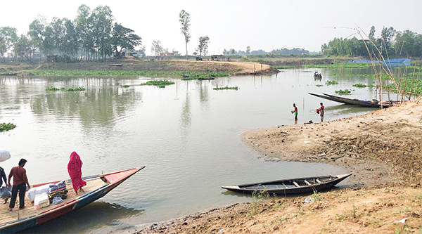 বংশাই নদে সেতু নেই, পারাপারের দুর্ভোগে দুই উপজেলার মানুষ