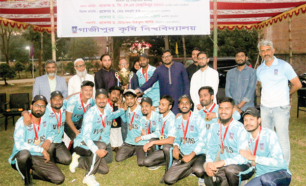 গাজীপুর কৃষি বিশ্ববিদ্যালয়ে (গাকৃবি) আন্তঃঅনুষদীয় (ছাত্র) ও আন্তঃহল (ছাত্রী)-এর ক্রিকেট ও ভলিবলের ক্রীড়া প্রতিযোগিতা ২০২৫ অনুষ্ঠিত হয়েছে। ৭টি অনুষদ থেকে ছাত্ররা এবং ৩টি ছাত্রী হল থেকে মেয়ে শিক্ষার্র্থীরা এ প্রতিযোগিতায় অংশগ্রহণ করেন। আনন্দ-উৎসবমুখর পরিবেশের মধ্যদিয়ে ক্রীড়া প্রতিযোগিতার ফাইনাল খেলাগুলো গত শুক্রবার দিনব্যাপী বিশ্ববিদ্যালয়ের কেন্দ্রীয় খেলার মাঠে অনুষ্ঠিত হয়। প্রতিযোগিতায় ক্রিকেটে (ছাত্র) চ্যাম্পিয়ন হয় ভেটেরিনারি মেডিসিন অ্যান্ড অ্যানিম্যাল সায়েন্স অনুষদ এবং রানার্স আপ হয় পোস্টগ্র্যাজুয়েট-১ (পিজি-১)। আবার ক্রিকেটে মেয়েদের থেকে চ্যাম্পিয়ন ও রানার্স আপ হয়েছে যথাক্রমে হয়েছে নতুন ছাত্রী-২ এবং নতুন ছাত্রী হল-১। অন্যদিকে ভলিবল (ছাত্র) খেলায় চ্যাম্পিয়ন হয় কৃষি অনুষদ এবং ভলিবল (ছাত্র) খেলায় রানার্স আপ হয় ফিশারিজ অনুষদ। তবে ভলিবল (ছাত্রী) খেলায় চ্যাম্পিয়ন হয়েছে নতুন ছাত্রী হল-১ এবং ভলিবল (ছাত্রী) খেলায় রানার্স আপ হয়েছে ছাত্রী হল-২। ছেলেদের ক্রিকেটে প্লেয়ার অব দ্য ফাইনাল এবং টুর্নামেন্ট হন ভেটেরিনারি মেডিসিন অ্যান্ড অ্যানিম্যাল সায়েন্স অনুষদের হাবিবুল ইসলাম পলাশ এবং ছেলেদের ভলিবল প্রতিযোগিতায় প্লেয়ার অব দ্য টুর্নামেন্ট হন কৃষি অনুষদের হারিস উদ্দিন।