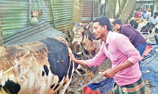 নোয়াখালীর কবিরহাটে রাতের আঁধারে গরুর খামারে পেট্রোল ঢেলে আগুন দিয়েছে দুর্বৃত্তরা। এতে খামারে থাকা ৮টি গরু দগ্ধ হয়, এর মধ্যে ১টি বাছুর আগুনে পুড়ে মারা যায়, ২টি জবাই করে দেয়া হয়েছে। আগুনে খামারটির প্রায় ৩০-৩৫ লাখ টাকার ক্ষতি হয়েছে বলে দাবি করেন ক্ষতিগ্রস্ত খামারের মালিক। গতকাল সোমবার বিষয়টি নিশ্চিত করেন কবিরহাট থানার কর্মকর্তা (ওসি) শোহীন মিয়া। এর আগে, গত রোববার রাত ২টার দিকে উপজেলার সুন্দলপুর ইউনিয়নের ৬নম্বর ওয়ার্ডের কালা মিয়া মেম্বারের বাড়িতে এ ঘটনা ঘটে। ক্ষতিগ্রস্ত খামারি শাহজাহান বলেন, গত ২০ বছর ধরে তিনি গরুর খামারের মাধ্যমে জীবিকা নির্বাহ করে আসছেন। বর্তমানে তার খামারে ৬টি বড় গরু ও ২টি বাছুর ছিল। গত রোববার দিবাগত রাত ১টার দিকে গরুর দুধ দোহনের পর খামার বন্ধ করে ঘরে গিয়ে ঘুমিয়ে পড়েন। রাত ২টার দিকে খামার থেকে গরুর ডাক শুনে জানালা দিয়ে দেখেন খামারে আগুন জ্বলছে। তিনি আরো বলেন, খামারে থাকা গরুগুলোর গায়ে আগুন জ্বলতে দেখে ঘর থেকে বের হওয়ার চেষ্টা করলে দেখি বাহির থেকে দরজা বন্ধ করে দেয়া। পাশাপাশি থাকা তার অন্য দুই ভাইয়ের ঘরের দরজা একই ভাবে আটকে দেয়া হয়। পরে আমাদের চিৎকারে আশপাশের লোকজন এগিয়ে এসে বাইরে থেকে আটকানো দরজা খুলে দিলে প্রতিবেশীদের সহযোগিতায় আগুন নিয়ন্ত্রণে আসে। এর আগে, খামারে থাকা ৮টি গরু ও গোখাদ্য পুড়ে যায়। তিনি অভিযোগ করে বলেন, বাড়ির একপক্ষের সঙ্গে জায়গা জমি নিয়ে বিরোধের জেরে তারা গত কয়েকদিন ধরে তাকে হুমকি দিয়ে আসছে।