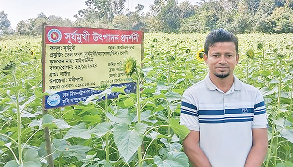 রবি মৌসুমে চারদিকে নানান ফসলের সৌরভ এবং সৌন্দর্য উপভোগের জন্য মানুষ কৃষি জমিতে ভিড় করে। তম্মধ্যে অন্যতম হচ্ছে সূর্যমুখী। সূর্যমুখী যেমন সৌন্দর্যের প্রতীক হিসেবে পুলকিত করে, ঠিক তেমনি ফুলের বীজ থেকে উৎপাদিত হয় উৎকৃষ্ট মানের তেল। সূর্যমুখীর বীজ পশুখাদ্যে ব্যবহৃত হয়, তাছাড়া স্থানীয় পর্যায়ে সরিষার ঘানিতে সূর্যমুখীর বীজ থেকে তেল উৎপাদন করা যায়। ব্রাহ্মণবাড়িয়ার নবীনগর উপজেলার শিবপুর, লাউরফতেহপুর, শ্রীরামপুর ইউনিয়নসহ বিভিন্ন এলাকায় প্রায় ৫০ বিঘা জমিতে আরডিএস ২৭৫ জাতের সূর্যমুখী চাষ করা হয়েছে। কৃষি বিভাগের সার্বিক তত্বাবধানে সরকারের ফ্লাড রিকনস্ট্রাকশন ইমারজেন্সি এসিসট্যান্স প্রজেক্টের (ফ্রীপ) অর্থায়নে চাষিদের উদ্বুদ্ধ করতে বিনামূল্যে সরবরাহ করা হয়েছে সার, বীজ ও নগদ অর্থ। এক বিঘা জমি থেকে ছয় থেকে সাত মন সূর্যমুখীর বীজ পাওয়া যাবে বলে জানিয়েছে চাষিরা। উৎপাদিত বীজ দিয়ে তেল ছাড়াও পাওয়া যাবে খৈল। অবশিষ্ট গাছ ব্যহার করা যাবে জ্বালানীর কাজে। ৯০ থেকে ১০৫ দিনের মধ্যেই কৃষকরা সূর্যমুখী ফুল থেকে বীজ ঘরে তুলতে পারবেন। ভিটামিন সমৃদ্ধ সূর্যমুখীর তেলে কোলেস্টোরেলের পরিমাণ খুবই কম। ফতেহপুর গ্রামের কৃষক ঝর্ণা বেগম বলেন, কৃষি কর্মকর্তাদের উৎসাহে সূর্যমুখী চাষ করেছেন তিনি। সরকারি ভাবে ফ্রীপ প্রকল্পের আওতায় বীজ, সার, বালাইনাশক, নগদ আর্থিক সহায়তা পেয়েছি। আবহাওয়া ভালো থাকলে ভালো ফলন পাওয়া যাবে। আরও বলেন, সূর্যমুখীবীজের কাঙ্ক্ষিত দাম পেলে ধান চাষের তুলনায় অন্তত তিন গুণ লাভ হবে। ঝর্ণা বেগমের মতো লাউর ফতেহপুর ইউনিয়নে বিভিন্ন এলাকায় সূর্যমুখী চাষাবাদে আগ্রহী হচ্ছেন কৃষকেরা। তাদের অনেকেই সরিষা চাষের পরিবর্তে সূর্যমুখী চাষ করছেন। অনেকে চাষাবাদ করছেন পরিত্যক্ত জমিতে।