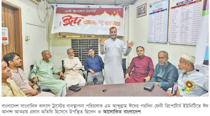 ফেনীর সাংবাদিকদের মধ্যে ঈদ শুভেচ্ছা বিনিময় করেন সিনিয়র সাংবাদিক এম মামুনুর রশিদ, ফেনী রিপোর্টার্স ইউনিটির সাবেক সভাপতি শুকদেব তপন, আরিফুল আমিন রিজভী, সাবেক সম্পাদক মাইন উদ্দিন, আলী হায়দার মানিক, ইয়ুথ জার্নালিস্ট ফোরাম ফেনী জেলা শাখার সভাপতি দৈনিক অজেয় বাংলা নির্বাহী সম্পাদক শাহজালাল ভূঞা, দৈনিক আমার দেশ প্রতিনিধি এসএম ইউসুফ আলী, সোনাগাজী প্রেসক্লাবের সভাপতি মাহমুদুল হাসান, সাংবাদিক ইউনিয়ন ফেনীর সাধারণ সম্পাদক মিজানুর রহমান, সিনিয়র সাংবাদিক কামাল উদ্দিন ভূঁইয়া, নজির আহমেদ রতন, জহিরুল হক মিলন, দেশ রুপান্তর প্রতিনিধি শফি উল্লাহ রিপন, বণিক বার্তা প্রতিনিধি নুর উল্লাহ কায়সার, এখন টিভির প্রতিনিধি সোলেয়মান হাজারী ডালিম, ফটো জার্নালিস্ট এসোসিয়েশন ফেনী জেলা সভাপতি ইয়াছিন আরাফাত রুবেল, সাধারণ সম্পাদক দুলাল তালুকদার, সকালের সময় প্রতিনিধি ওমর ফারুক, তোফায়েল আহমেদ নিলয়, দাগনভূঞা প্রেসক্লাবের সাবেক সভাপতি এমএ তাহের পন্ডিত, সোনাগাজীর সাংবাদিক সাইফুল আলম হিরন, আলা উদ্দিন, সাইফুল ইসলাম, হাবীব মিয়াজী এমএ আকাশ, মোল্লা ইলিয়াস ও আজিজ আল ফয়সাল প্রমুখ।