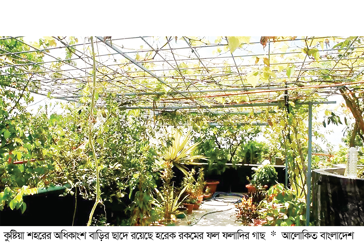 শহরের প্রায় প্রতিটি বাড়ির ছাদে শোভা পাচ্ছে হরেক রকমের ফল ফলাদির গাছ। এযেন বিপন্ন প্রকৃতির মাঝে সবুজের বিপ্লব। পরিবেশবিদদের মতে প্রাকৃতিক ভারসাম্য রক্ষায় প্রতিটি বাড়িতেই এমন পদ্ধতি অনুসরণ করা উচিৎ। জানা গেছে, ২০১৬ সালে কুষ্টিয়ার সরকারি সেন্ট্রাল কলেজ শিক্ষক আজমল গনি আরজু (বর্তমানে অবসর) ও তার স্ত্রী কুষ্টিয়া সরকারি কলেজের উদ্ভিদ বিজ্ঞান বিভাগের সহকারী অধ্যাপক রিজিয়া সুলতানা পপি শহরের হাসপাতাল মোড় এলাকায় তাদের নিজ বাড়ির ছাদের ওপর ফুলের আবাদ শুরু করেন। এক প্রকার শখের বশে বাড়ির আঙিনায় ফুলের আবাদ শুরু করলেও বর্তমানে এর পরিধি বেড়েছে অনেক। ৩ স্তরে বর্তমানে প্রায় শতাধিক রকমের ফলফলাদির আবাদ হচ্ছে।
