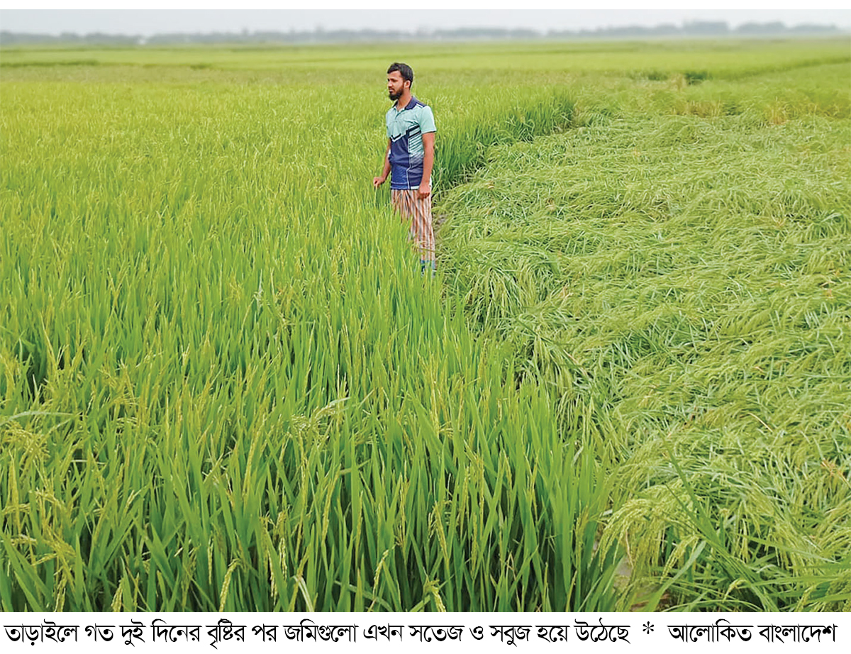 কিশোরগঞ্জের তাড়াইলে গত দুই দিনের বৃষ্টির পর জমিগুলো এখন সতেজ ও সবুজ হয়ে উঠেছে। চাষিদের সাশ্রয় হবে হাজার হাজার টাকার ডিজেল ও বিদ্যুৎখরচ। এতে তাদের মধ্যে স্বস্তি ফিরেছে। গতকাল বৃহস্পতিবারের বৃষ্টিতে বোরো ধানের জমিতে নতুন করে প্রাণ ফিরেছে বলে জানান হাছলা গ্রামের কৃষক মাসুদ রানা। গত দু সপ্তাহে প্রচণ্ড খরা ও পানির অভাবে এসব জমির ধান মরে যাওয়ার উপক্রম হয়ে পড়েছিল। হঠাৎ বৃষ্টির ফলে বোরো চাষিদের মাঝে স্বস্তির নিঃশ্বাস দেখা যাচ্ছে। উপজেলা কৃষি অফিস সূত্রে জানা যায়, চলতি ইরি-বোরো মৌসুমে উপজেলার সাতটি ইউনিয়নে ১০ হাজার ৩৩০ হেক্টর জমিতে বোরো ধান আবাদের লক্ষ্যমাত্রা নির্ধারণ করা হয়েছে।