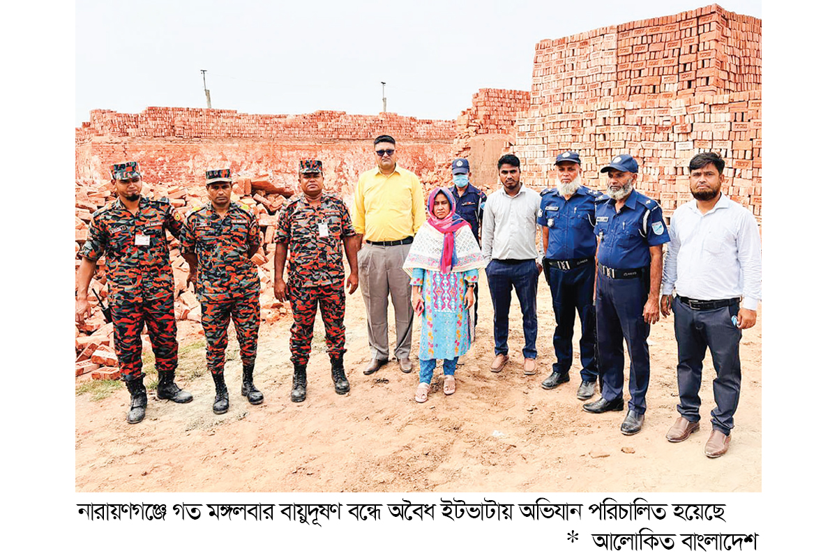 নারায়ণগঞ্জে বায়ুদূষণ বন্ধে অবৈধ ইটভাটায় অভিযান চালিয়েছে পরিবেশ অধিদপ্তর, নারায়ণগঞ্জ। গত মঙ্গলবার জেলার আড়াইহাজার উপজেলার শিলমান্দি, ফাউসা বাজার এলাকায় পরিবেশ অধিদপ্তর, সদর দপ্তরের, মনিটরিং অ্যান্ড এনফোর্সমেন্ট উইং-এর এক্সিকিউটিভ ম্যাজিস্ট্রেট ও সিনিয়র সহকারী সচিব ফয়জুন্নেছা আক্তারের নেতৃত্বে এ অভিযান পরিচালিত হয়। অভিযানে ইট প্রস্তুত ও ভাটা স্থাপন (নিয়ন্ত্রণ) আইন, ২০১৩ (সংশোধিত-২০১৯) অনুযায়ী মেসার্স এএম ব্রিকস নামক ইটভাটার কিলন এক্সভেটরের সাহায্যে ভেঙে ফেলা হয় এবং ফায়ার সার্ভিসের সহযোগিতায় পানি দিয়ে ভাটাটির কার্যক্রম বন্ধ করে দেওয়া হয়। এ সময় পরিবেশ অধিদপ্তর, নারায়ণগঞ্জ জেলা কার্যালয়ের উপ-পরিচালক এ.এইচ.এম রাসেদ, সহকারী পরিচালক মো. মোবারক হোসেন, নারায়ণগঞ্জ জেলা পুলিশ এবং ফায়ার সার্ভিসের সদস্যরা উপস্থিত ছিলেন। পরিবেশ অধিদপ্তর, নারায়ণগঞ্জ জেলা কার্যালয়ের উপ-পরিচালক এ.এইচ.এম রাসেদ জানান, নারায়ণগঞ্জে অবৈধ ইটভাটা ও বায়ুদূষণকারী কারাখানা-প্রকল্পের বিরুদ্ধে পরিবেশ অধিদপ্তরের এ ধরনের অভিযান অব্যাহত থাকবে।