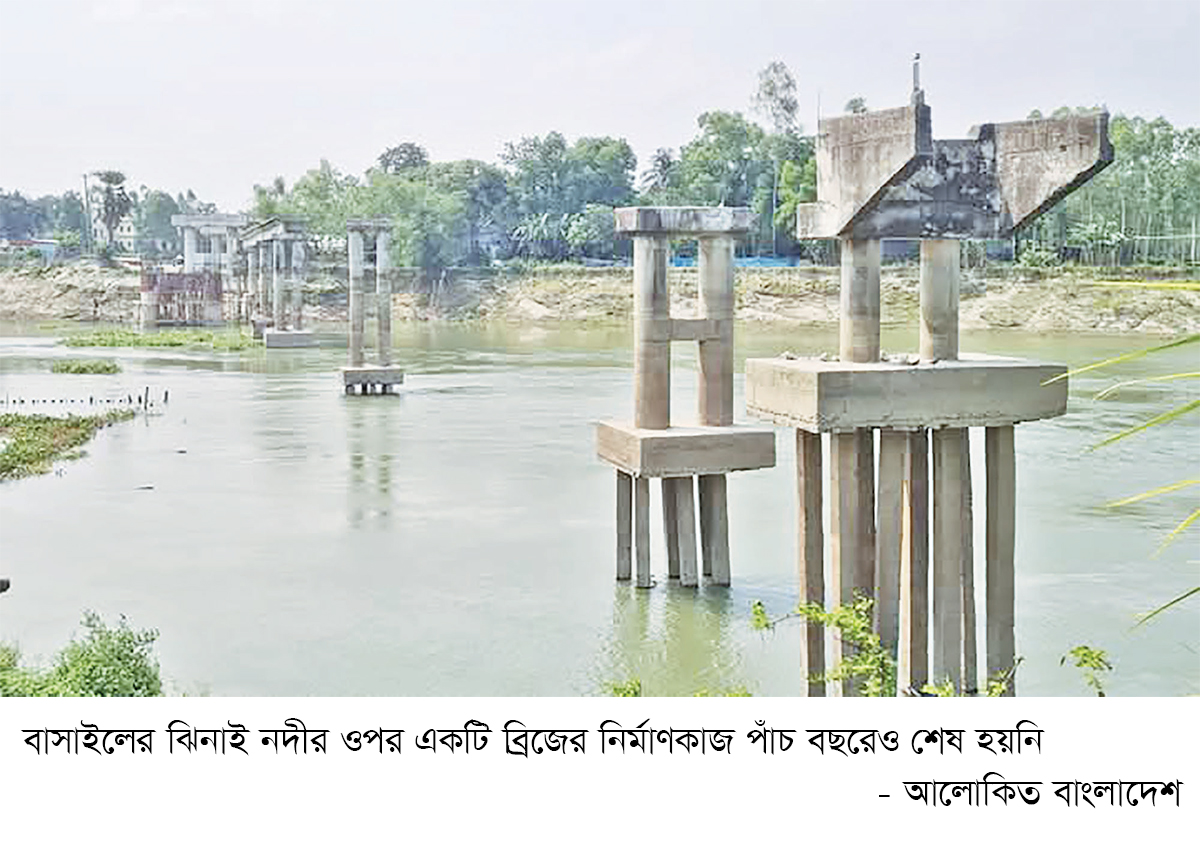 টাঙ্গাইলের বাসাইলে ঝিনাই নদীর ওপর একটি ব্রিজের নির্মাণকাজ পাঁচ বছরেও শেষ হয়নি। প্রায় ছয় মাস আগে কাজটি ফেলে রেখে উধাও ঠিকাদার। এর ফলে ভোগান্তিতে পড়েছেন বাসাইল ও মির্জাপুর উপজেলার অন্তত ২০টি গ্রামের মানুষ। নদীটির দুইপাড়ে শিক্ষা প্রতিষ্ঠান থাকায় সাধারণ মানুষের পাশাপাশি শিক্ষার্থীদের নৌকায় করে প্রতিনিয়ত পারাপার হতে হচ্ছে।
