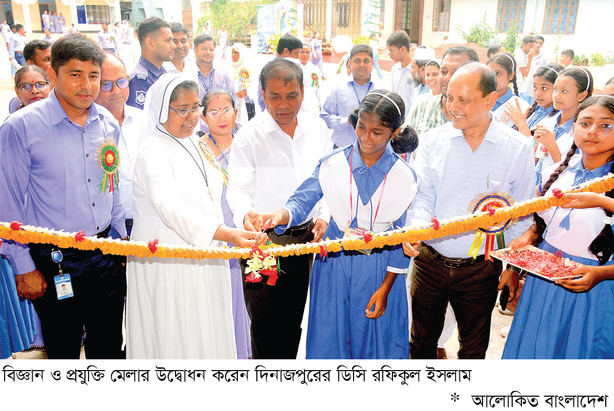 গতকাল বৃহস্পতিবার সকালে দিনাজপুরে সেন্ট যোসেফস স্কুলের আয়োজনে স্কুল প্রাঙ্গণে বিজ্ঞান ও প্রযুক্তি মেলা-২০২৫ এর সেন্ট যোসেফস স্কুলের প্রধান শিক্ষক সিস্টার খ্রীষ্টিনা লিপি দেশাইের সভাপতিত্বে বিজ্ঞান ও প্রযুক্তি মেলার উদ্বোধন করেন ও প্রধান অতিথি হিসেবে বক্তব্য রাখেন দিনাজপুর জেলা প্রশাসক ও জেলা ম্যাজিস্ট্রেট রফিকুল ইসলাম।