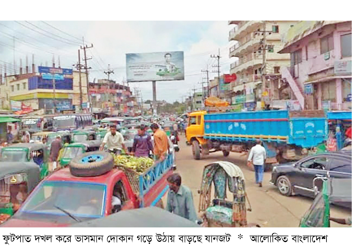 ফুটপাত দখল করে অতিরিক্তহারে ভাসমান দোকান গড়ে উঠায় পথচারীরা পড়ছে দুর্ভোগে। পথচারীদের চলাচলের পথ দখলে যাওয়ায় পথচারীরা বাধ্য হয়ে সড়ক দিয়ে চলাচল করছেন ফলে সড়কে চলাচলরত যানবাহনের সঙ্গে ছোটখাটো ধাক্কাধাক্কি লেগেই আছে। এছাড়া সড়ক লাগোয়া বিশেষ করে বাসস্ট্যান্ডের পশ্চিম দক্ষিণে বিভিন্ন মুদির দোকান, গ্যারেজ, হোটেল, স্টিল ফার্নিচার দোকানের মালামাল ফুটপাতে রেখে ফুটপাত দখলে রাখেন বিভিন্ন সময় উপজেলা প্রশাসন অভিযান পরিচালনা করে সতর্ক কিংবা নামেমাত্র জরিমানা আদায় করায় অভিযানের ফলাফল শূন্যই থাকে।