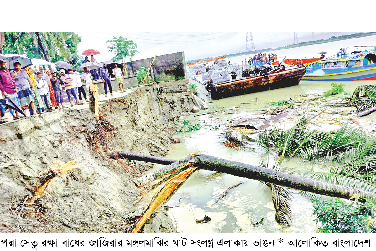 আকস্মিক পদ্মার আগ্রাসী থাবায় জাজিরায় পদ্মা সেতু প্রকল্প রক্ষা বাঁধের প্রায় ১৫০ মিটার বাঁধ বিলীন হয়ে গেছে। ২ ঘণ্টার এই ভয়াবহ পদ্মার ভাঙনে বাঁধের পাশে থাকা ১২টি ব্যবসা প্রতিষ্ঠান ও ১টি টিনসেট বাড়ির ৮টি কক্ষ নদীগর্ভে বিলীন হয়ে যায়। এ সময় অনেক চেষ্টা করেও শ্রমিক সংকট ও বৈরি আহাওয়ার কারণে ক্ষতিগ্রস্তরা তাদের ব্যবসা প্রতিষ্ঠান ও বসতঘর রক্ষা করতে পারেনি। চোখের সামনেই বিলীন হয়ে যায় সবকিছু। ভাঙন আতঙ্কে রয়েছে পদ্মার তীরবর্তী আলমখার কান্দি, হাজী ওসিমুদ্দিন মাদবর কান্দি ও স্থানীয় মঙ্গল মাঝির বাজার।