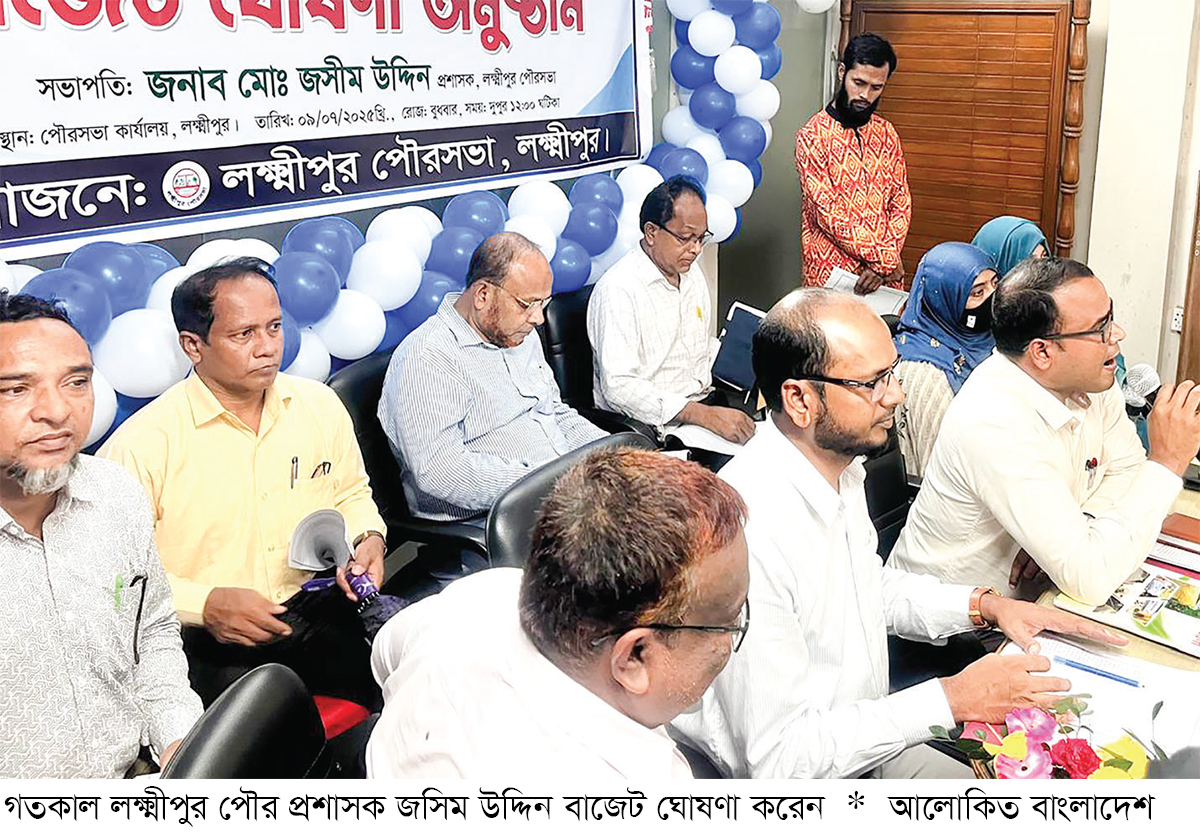 লক্ষ্মীপুর পৌরসভার ২০২৫-২৬ অর্থ বছরের জন্য প্রায় ১০৩ কোটি টাকার বাজেট ঘোষণা করা হয়েছে। গতকাল বুধবার লক্ষ্মীপুর পৌর প্রশাসক জসিম উদ্দিন এ বাজেট ঘোষণা করেন। লক্ষ্মীপুর পৌরসভার কার্যালয়ের হল রুমে এ আয়োজন করা হয়।