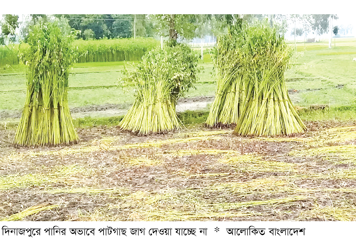 দিনাজপুরে দীর্ঘমেয়াদি খরার কারণে চাষিরা একদিকে যেমন পাট পচানোর পানি পাচ্ছেন না, তেমনি খরায় এবার পাটের ফলন কম হওয়ার আশঙ্কা করছেন তারা। ভরা বর্ষার মৌসুমেও পানির সঙ্কটে পুরোদমে পাট কাটা শুরু করতে পারছেন না। আবার সাহস করে পাট কাটা শুরু করেও বিপাকে পড়েছেন অনেক কৃষক। জলাশয়ে পর্যাপ্ত পানির অভাবে পাট জাগ দিতে না পারায় শুকিয়ে যাচ্ছে পাট।