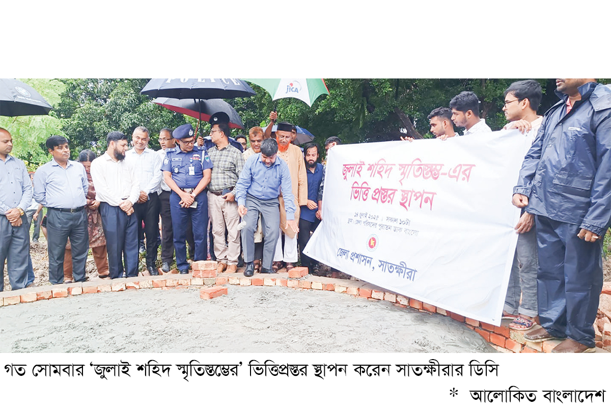 ভিত্তিপ্রস্তর স্থাপন করেন সাতক্ষীরার জেলা প্রশাসক মোস্তাক আহম্মেদ। এ সময় তিনি বলেন, জুলাই আন্দোলনে রাজপথে জীবন দেওয়া শহিদদের শ্রদ্ধাভরে স্মরণ করতে এই স্মৃতিস্তম্ভ নির্মাণ করা হচ্ছে। এটি দেশের ৬৪টি জেলাতেই নির্মিত হবে। আশা করছি, আগামী ৫ আগস্ট আনুষ্ঠানিকভাবে স্মৃতিস্তম্ভ উদ্বোধন করে শহিদদের প্রতি শ্রদ্ধা জানানো সম্ভব হবে।