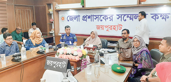 জুলাই পুনর্জাগরণ অনুষ্ঠানমালা বাস্তবায়ন উপলক্ষে জয়পুরহাটে প্রস্তুতিমূলক সভা অনুষ্ঠিত হয়েছে। গতকাল জেলা প্রশাসকের সম্মেলন কক্ষে জেলা প্রশাসন আয়োজনে জেলা প্রশাসক আফরোজা আকতার চৌধুরীর সভাপতিত্বে এ সভা অনুষ্ঠিত হয়। এসময় উপস্থিত ছিলেন- জেলা পরিষদের প্রধান নির্বাহী কর্মকর্তা সরকার মোহাম্মদ রায়হান, অতিরিক্ত জেলা ম্যাজিস্ট্রেট মোহাইমেনা শারমিন, অতিরিক্ত পুলিশ সুপার জিন্নাহ আল মামুন, জেলা বিএনপির আহ্বায়ক গোলজার হোসেন, জামায়াতের সহকারী সেক্রেটারি অ্যাডভোকেট মামুনুর রশীদ, সদর উপজেলা নির্বাহী অফিসার রাশেদুল ইসলাম, জেলা প্রশাসনের সহকারী কমিশনার আব্দুল্লাহ আল মাহবুব, জেলা শিক্ষা অফিসার রুহুল আমীন, জেলা ক্রীড়া অফিসার গৌতম কুমার, যুব উন্নয়ন অধিদপ্তরের সহকারী পরিচালক রওশন আলম, মহিলা বিষয়ক অধিদপ্তরের উপ-পরিচালক লায়লুন নাজমা বেগম প্রেসক্লাবের সিনিয়র সহ-সভাপতি মাশরেকুল আলম প্রমুখ * আলোকিত বাংলাদেশ