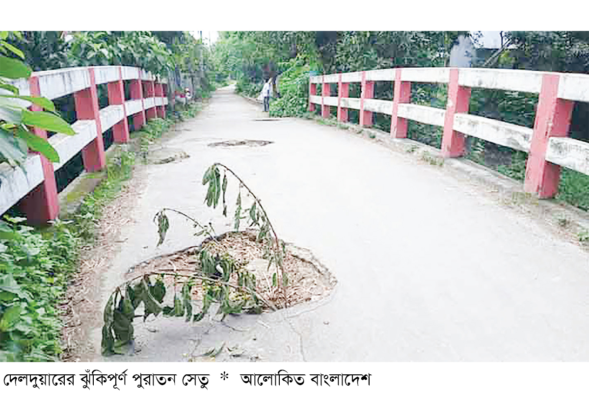 জানা যায়, দেলদুয়ার উপজেলার ডুবাইল ইউনিয়নের আরমোষ্ঠা গ্রামের উপর দিয়ে লৌহজং নদী প্রবাহিত। ওই নদীর পাশে দেলদুয়ার-আরমোষ্ঠা সড়কে জাহানখালী খালের উপর প্রায় ৪০ বছর আগে একটি সরু সেতু নির্মাণ করা হয়। ওই সেতু দিয়ে উপজেলার চরপাড়া, টুকচানপুর, মেরেগনা, ফুলতারা, আবাদপুর, এলাচিপুর, জাঙ্গগুলিয়া, বাথুলি, মোষ্ঠা, আরমোষ্ঠা, কামান্নাসহ আশপাশের ১২টি গ্রামের লক্ষাধিক মানুষ চলাচল করে থাকে। সম্প্রতি ওই সরু সেতুর চারস্থানে চারটি গর্ত হয়ে চলাচলে ঝুঁকি সৃষ্টি করেছে। স্থানীয়রা গর্তগুলোতে গাছের ছোট ছোট ডাল দিয়ে যান চলাচলে সতর্কবার্তা জারি করেছে। প্রাণহাণির ঝুঁকি নিয়ে ওই সেতু দিয়েই প্রতিদিন স্কুলগামী কোমলমতি ছাত্রছাত্রীরা চলাচল করছে। এছাড়া ঝুঁকি নিয়ে চরম অনিরাপত্তায় ইজিবাইক, মোটরসাইকেল, ব্যাটারি চালিত অটোরিকশা, অটোভ্যান, সিএনজি চালিক অটোরিকশা, ঘোড়ার গাড়িতে কৃষিপণ্য আনা-নেওয়া করা হচ্ছে। ঝুঁকিপূর্ণ সেতুতে ব্যাটারি চালিত অটোরিকশা চালক কামান্না গ্রামের অনিল জানান, পল্লী গ্রামের জন্য এই সেতুটি খুবই গুরুত্বপূর্ণ। সেতুটি জেলা-উপজেলার সঙ্গে সড়ক সংযোগ করেছে। সংযোগ সড়কের মাঝে লৌহজং নদীর পাশে জাহানখালী নামে একটি খাল রয়েছে। সেই জাহানখালী খালের উপর প্রায় ৪০ বছর আগে একটি সরু সেতু নির্মাণ করা হয়। ওই সেতু দিয়ে তিনি ৭ বছর ধরে ব্যাটারি চালিত অটোরিকশা চালান। বছর দুই আগে সেতুটির মাঝখানে কয়েকটি বড় বড় গর্ত হয়। তারপর থেকে অতিমাত্রায় সতর্কতার সঙ্গে সেতুটি অতিক্রম করতে হচ্ছে।