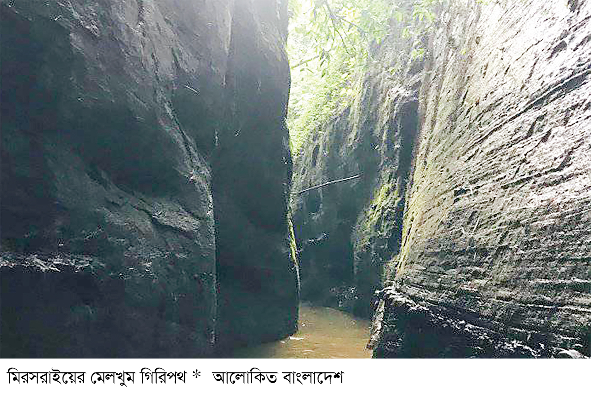 চট্টগ্রামের মিরসরাইয়ে দুর্গম পাহাড়ে অবস্থিত মেলখুম গিরিপথ। গহীন পাহাড়ের বুক চিরে বয়ে চলা এ গিরিপথ যেন এক রহস্যময় জগৎ। সমতল থেকে দেড় থেকে দুই ঘণ্টা বালি পাথরের পাহাড়ি দুর্গম পথ পাড়ি দিয়ে পৌঁছাতে হয় মেলখুমে। প্রতি পদে পদে সেখানে দেখা যায় বৈচিত্রময় প্রকৃতির রূপ। রয়েছে আলো আঁধারের খেলা। এসবের টানে প্রকৃতিপ্রেমীরা ছুটে আসেন মেলখুমে। তবে পাহাড়ি এই ঝিরিপথের বিপদসমূহের সম্পর্কে না জেনে ভিতরে ঢুকে এরইমধ্যে ঘটেছে প্রাণহানির ঘটনা। পথ হারিয়ে জীবন ঝুঁকির ঘটনা ঘটছে অহরহ।