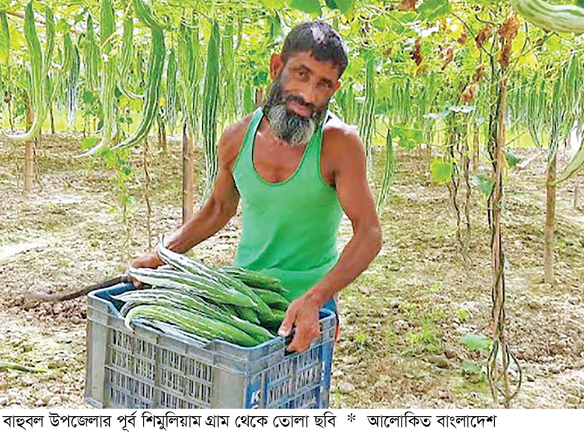 কৃষক নুরুল আমিন হবিগঞ্জ জেলার বাহুবল উপজেলার পূর্ব শিমুলিয়াম গ্রামের বাসিন্দা। তিনি উপ-সহকারী কৃষি কর্মকর্তা শামীমুল হক শামীমের পরামর্শ গ্রহণ করে মার্চ মাসের শুরুতে বাড়ির পাশে ৩৩ শতক জমি আবাদ করেন। এপ্রিল মাসের শুরুতে রোপণ করেন উন্নতজাতের চিচিঙ্গার বীজ। রোপণের প্রায় ১৫ দিনের মধ্যে চারা গজায়। সঠিক পরিচর্যার মাধ্যমে গাছ বড় হয়। প্রায় দুই মাসের মধ্যে গাছে ফুল আসে। বর্তমানে গাছে চিচিঙ্গা ঝুলছে। প্রায় দুই দিন পর পর গাছ থেকে চিচিঙ্গা সংগ্রহ করে বাজারে বিক্রি করা হচ্ছে।