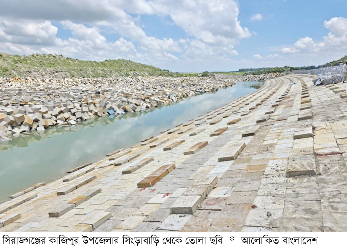 সিরাজগঞ্জে পানি উন্নয়ন বোর্ডের তত্ত্বাবধানে কাজিপুর উপজেলার যমুনা নদীর ভয়াবহ ভাঙন রোধে ৫৫৪ কোটি টাকা ব্যয়ে ক্ষুদবান্দি থেকে বাঐখোলা পর্যন্ত ৪৮ মিটার যমুনা ডানতীর সংরক্ষণ প্রকল্পের কাজ শেষ করা হয়েছে। এ প্রকল্প বাস্তবায়নে এলাকার জনমনে এখন স্বস্তি ফিরে এসেছে। স্থানীয় পানি উন্নয়ন বোর্ডের উপ-বিভাগীয় প্রকৌশলী (হেডকোয়ার্টার) নাজমুল হোসাইন এ তথ্য নিশ্চিত করেছেন। তিনি জানান, উক্ত উপজেলার যমুনার ভাঙন রোধে সিংড়াবাড়ি, পাটাগ্রাম ও বাঐখোলা এলাকা সংরক্ষণ (১ম সংশোধিত) এ প্রকল্প বাস্তবায়নে সংশ্লিষ্ট মন্ত্রণালয় ৫৫৪৭৬.৮২ লাখ টাকা বরাদ্দ দেওয়া হয়। স্থানীয় পানি উন্নয়ন বোর্ড দীর্ঘমেয়াদি এ প্রকল্প বাস্তবায়নে দরপত্র আহ্বান করে। সরকারি বিধিমতে এ দরপত্রে ৩৪টি প্যাকেজে ৩৪ জন ঠিকাদার নির্বাচিত হয় এবং ২০২০ সালের অক্টোবর মাসে নির্বাচিত ঠিকাদারি প্রতিতষ্ঠানগুলো প্রকল্পে কাজ শুরু করে। এ প্রকল্পের কাজ দীর্ঘমেয়াদি হলেও নানা জটিলতার কারণে একাধিকবার সময়ও বাড়ানো হয়েছে। স্থানীয় পানি উন্নয়ন বোর্ডের নির্বাহী প্রকৌশলীর তত্ত্বাবধানে এ প্রকল্পের কাজ যথানিয়মে দেখাশোনা ও নজরদারি করা হয়েছে এবং এ প্রকল্প পরিচালক তত্ত্বাবধায়ক প্রকৌশলী আরিফুল ইসলাম বগুড়া পানি উন্নয়ন সার্কেল, পাউবো ও সংশ্লিষ্ট মন্ত্রণালয়ের ঊর্ধ্বতন কর্মকর্তারাও এ প্রকল্প কাজ পরিদর্শন করেছেন। জনস্বার্থে এ প্রকল্পের উদ্দেশ্য যমুনা নদীর ডানতীর ভাঙন হইতে প্রকল্প এলাকায় অবস্থিত আবাসিক ভবন, স্কুল, কলেজ. মসজিদ, মাদ্রাসা, হাট বাজার, ইউনিয়ন পরিষদ অফিস, স্বাস্থ্য কমপ্লেক্স, সরকারি বেসরকারি অবকাঠামো ও কৃষি জমি, রাস্তাঘাট ইত্যাদি রক্ষা করা। সেইসঙ্গে বন্যা নিয়ন্ত্রণ বাঁধ নদী গর্ভে বিলীন হওয়া রোধসহ প্রকল্প এলাকার উজানে এবং ভাটিতে এরআগে সম্পাদনকৃত নদীর তীর প্রতিরক্ষামূলক ঙঁঃভষধহশ হওয়া রোধ করা, বন্যা নিয়ন্ত্রণ বাঁধ নদীগর্ভে বিলীন হওয়ার ঝুঁকি হ্রাসের মধ্যে সমগ্র সিরাজগঞ্জ জেলার যমুনা নদীর বন্যা হতে রক্ষা করা, নদীর গতিপথ পরিবর্তন প্রতিরোধ করা ও সামাজিক নিরাপত্তাসহ এলাকার আর্থ সামাজিক উন্নয়ন অব্যাহত রাখা। এ জনস্বার্থে প্রকল্পের কাজ গত জুন মাসে শেষ করা হয়েছে। এ বিষয়ে সিরাজগঞ্জ পানি উন্নয়ন বোর্ডের নির্বাহী প্রকৌশলী মোখলেছুর রহমান বলেন, এ প্রকল্পের কাজ কঠোর নজরদারি ও তদারকির মধ্যে দিয়ে শেষ হয়েছে। এতে যমুনা নদীর ভাঙনসহ বিভিন্ন শিক্ষা প্রতিষ্ঠান, বিভিন্ন অবকাঠামো ও ফসলি জমি ভাঙন থেকে রক্ষা পাবে। এ প্রকল্প বাস্তবায়নে স্থানীয় জনমনে এখন স্বস্তি ফিরে এসেছে বলে তিনি উল্লেখ করেন।