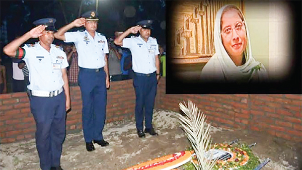 মাইলস্টোন স্কুল অ্যান্ড কলেজে বিমান বিধ্বস্তের ঘটনায় নিহত শিক্ষিকা মাহেরীন চৌধুরীর সমাধিতে শ্রদ্ধা নিবেদন করেছে বাংলাদেশ বিমান বাহিনী। গত বুধবার রাতে বিমান বাহিনীর গ্রুপ ক্যাপ্টেন মমিনুল ইসলামের নেতৃত্বে একটি প্রতিনিধি দল নীলফামারীর জলঢাকা উপজেলার বগুলাগাড়ি ইউনিয়নের চৌধুরীপাড়ায় মাহেরীনের বাবার বাড়িতে যান। সেখানে তার স্বামী, দুই সন্তান ও স্বজনদের সঙ্গে সাক্ষাৎ করে সমবেদনা জানান। পরে বগুলাগাড়ি স্কুল অ্যান্ড কলেজ সংলগ্ন কবরস্থানে মাহেরীনের সমাধিতে পুষ্পমাল্য অর্পণ করে শ্রদ্ধা নিবেদন করে বিমান বাহিনীর প্রতিনিধি দল * আলোকিত বাংলাদেশ