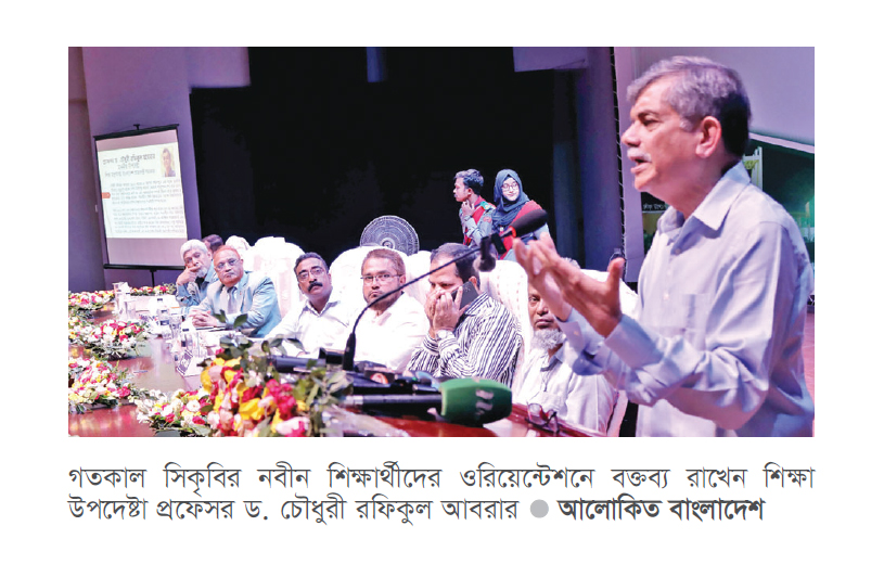 শিক্ষা উপদেষ্টা প্রফেসর ড. চৌধুরী রফিকুল আবরার বলেন, জুলাই ২৪ গণঅভ্যুত্থানের মাধ্যমে আমরা জাতি হিসেবে পুনর্জন্ম লাভ করেছি। বিগত ১৭ বছর আমরা আমাদের নাগরিকত্ব সপে দিয়েছিলাম একটি ফ্যাসিবাদি সরকারের কাছে। যারা পার্শ্ববর্তী দেশের সঙ্গে দাসত্বের চুক্তি করেছিল। আমরা কখনো ভাবিনি এর থেকে পরিত্রাণ পাওয়া সম্ভব হবে। গুম, খুন, আয়নাঘর, বিচারহীনতার মধ্য দিয়ে চলছিল এই বাংলাদেশ। এর থেকে পরিত্রাণ তোমরাই দিয়েছো। ছাত্র-জনতার এই অর্জনকে ম্লান হতে দেওয়া যাবে না। গতকাল বুধবার বিশ্ববিদ্যালয়ের কেন্দ্রীয় অডিটোরিয়ামে সিলেট কৃষি বিশ্ববিদ্যালয়ে (সিকৃবি) ২০২৪-২৫ শিক্ষাবর্ষের লেভেল-১, সেমিস্টার-১ এ ভর্তিকৃত নবীণ শিক্ষার্থীদের ওরিয়েন্টেশন-২০২৫ অনুষ্ঠানে তিনি প্রধান অতিথি হিসেবে বক্তব্য রাখেন।