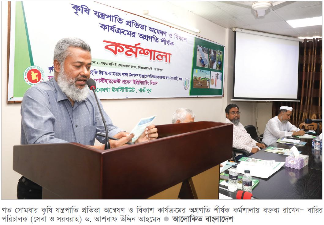 বাংলাদেশের কৃষি যান্ত্রিকীকরণে উদ্ভাবনী প্রতিভার খোঁজ এবং তাদের দক্ষতা বিকাশের লক্ষ্যে বাংলাদেশ কৃষি গবেষণা ইনস্টিটিউট (বারি) এর ফার্ম মেশিনারি এন্ড পোস্টহারভেস্ট প্রসেস ইঞ্জিনিয়ারিং (এফএমপিই) বিভাগের আয়োজনে গত সোমবার বারির এফএমপিই বিভাগের সেমিনার কক্ষে কৃষি যন্ত্রপাতি ও লাগসই প্রযুক্তি উদ্ভাবনের মাধ্যমে ফসল উৎপাদন ব্যবস্থাকে অধিকতর লাভজনক করা (এফএমডি) প্রকল্পের আওতায় কৃষি যন্ত্রপাতি প্রতিভা অন্বেষণ ও বিকাশ কার্যক্রমের অগ্রগতি শীর্ষক কর্মশালা অনুষ্ঠিত হয়েছে। কর্মশালায় কৃষি সম্প্রসারণ অধিদপ্তর, বাংলাদেশ ধান গবেষণা ইনস্টিটিউট, সিমিট বাংলাদেশ, আন্তর্জাতিক ধান গবেষণা ইনস্টিটিউ, ইন্টারন্যাশনাল পটেটো সেন্টার, এসিআই মটরস, মেটাল এগ্রো, উইগ্রো এগ্রি-ফিনটেক, সরকারি বিশ্ববিদ্যালয় ও বেসরকারি বিশ্ববিদ্যালয়ের শিক্ষক-শিক্ষার্থী এবং বিভিন্ন কৃষিযন্ত্র উদ্ভাবকরা অংশগ্রহণ করেন।