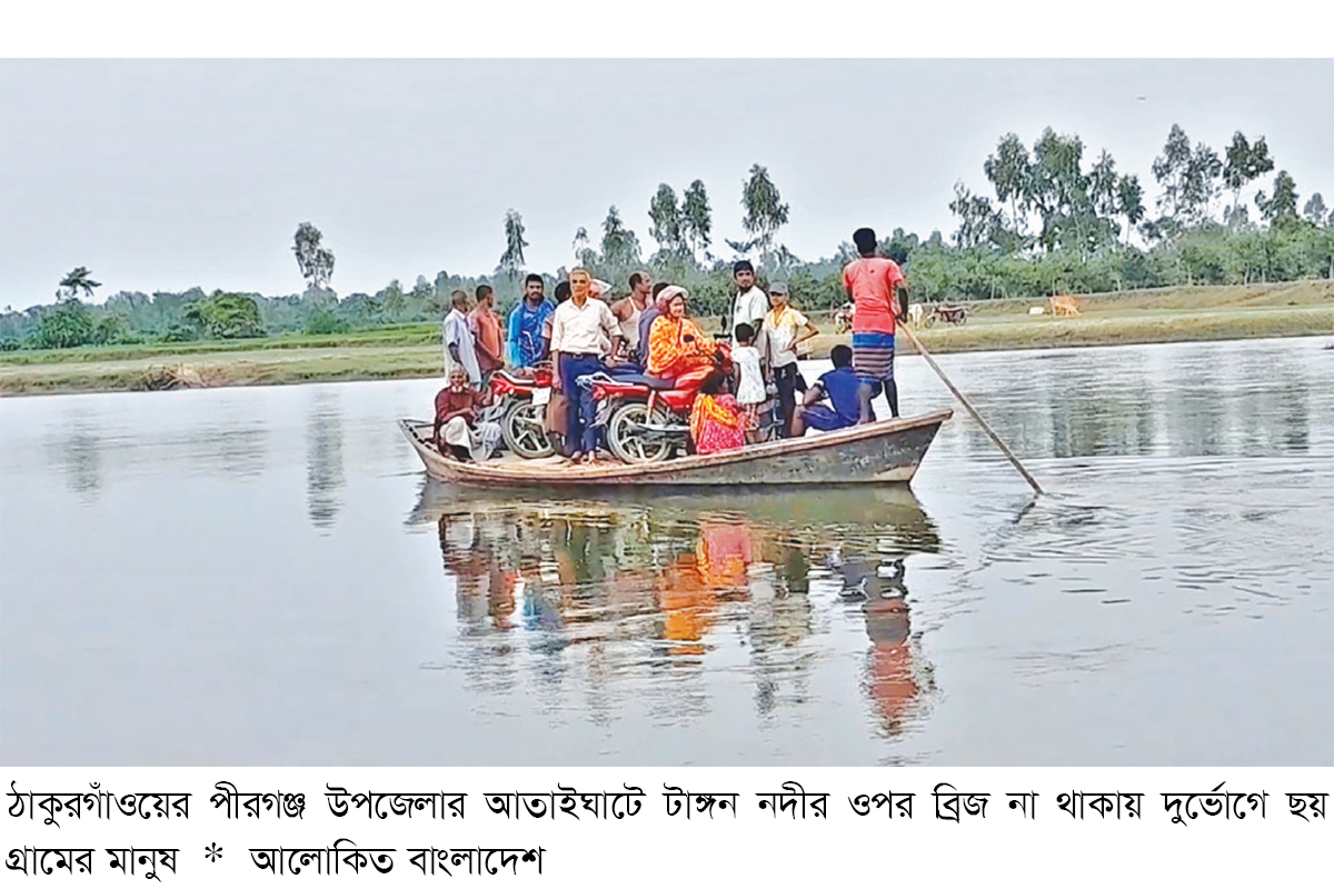 জানা যায়, ঠাকুরগাঁওয়ের পীরগঞ্জ এবং দিনাজপুরের সেতাবগঞ্জ উপজেলার সীমানা দিয়ে বয়ে গেছে টাঙ্গন নদী। পীরগঞ্জ উপজেলার জাবরহাট ইউনিয়নের আতাই ঘাটে এ নদীতে ব্রিজ না থাকায় জীবনের ঝুঁকি নিয়ে নৌকায় করে প্রতিদিন শত শত সাধারণ মানুষ নদী পারাপার হচ্ছেন।