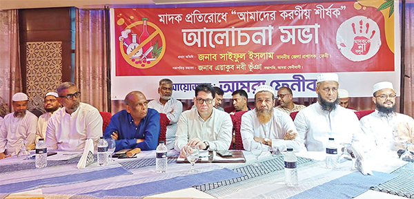 মাদক প্রতিরোধে আমাদের করণীয় শীর্ষক আলোচনা সভা গত শনিবার ‘আমরা ফেনীবাসী’ এর আয়োজনে অনুষ্ঠিত হয়েছে। এতে প্রধান অতিথি ছিলেন, ফেনী জেলা প্রশাসক সাইফুল ইসলাম। সংগঠনের সভাপতি জেলা বিএনপির যুগ্ম আহ্বায়ক এয়াকুব নবীর সভাপতিত্বে ও সাধারণ সম্পাদক মাওলানা একরামুল হক ভূঞার সঞ্চালনায় বিশেষ অতিথি ছিলেন- জেলা বিএনপির সদস্য সচিব আলাল উদ্দিন আলাল, যুগ্ম আহ্বায়ক গাজী হাবিব উল্লাহ মানিক, জেলা জামায়াতে ইসলামীর আমির মুফতি আবদুল হান্নান, সেক্রেটারি মাওলানা আবদুর রহিম, ফেনীর অতিরিক্ত পুলিশ সুপার আরিফুল ইসলাম, বিশিষ্ট চিকিৎসক তবারক উল্যাহ চৌধুরী বায়েজিদ প্রমুখ * আলোকিত বাংলাদেশ