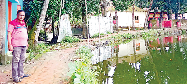 সড়ক ভেঙে পড়ছে কাচারি পুকুরে