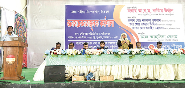 বাংলাদেশ নিরাপদ খাদ্য কর্তৃপক্ষ শরীয়তপুরের উদ্যোগে এবং খাদ্য মন্ত্রণালয় ও জেলা প্রশাসনের সহযোগিতায় শরীয়তপুরে জনসচেতনতামূলক কর্মশালা অনুষ্ঠিত হয়েছে। গতকাল বুধবার শরীয়তপুর পৌরসভা অডিটোরিয়ামে জেলা প্রশাসক তাহসিনা বেগমের সভাপতিত্বে অনুষ্ঠানে প্রধান অতিথি ছিলেন, বাংলাদেশ নিরাপদ খাদ্য কর্তৃপক্ষের সদস্য (যুগ্ম-সচিব) আ ন ম নাজিম উদ্দীন। বিশেষ অতিথি ছিলেন পুলিশ সুপার নজরুল ইসলাম, অতিরিক্ত জেলা প্রশাসক (সার্বিক) মো. ইমরুল হাসান, শরীয়তপুর পৌরসভার প্রশাসক ওয়াহিদ হোসেন ও নিরাপদ খাদ্য কর্মকর্তা, শরীয়তপুর, সুব্রত ভট্টাচার্য্য ষ আলোকিত বাংলাদেশ