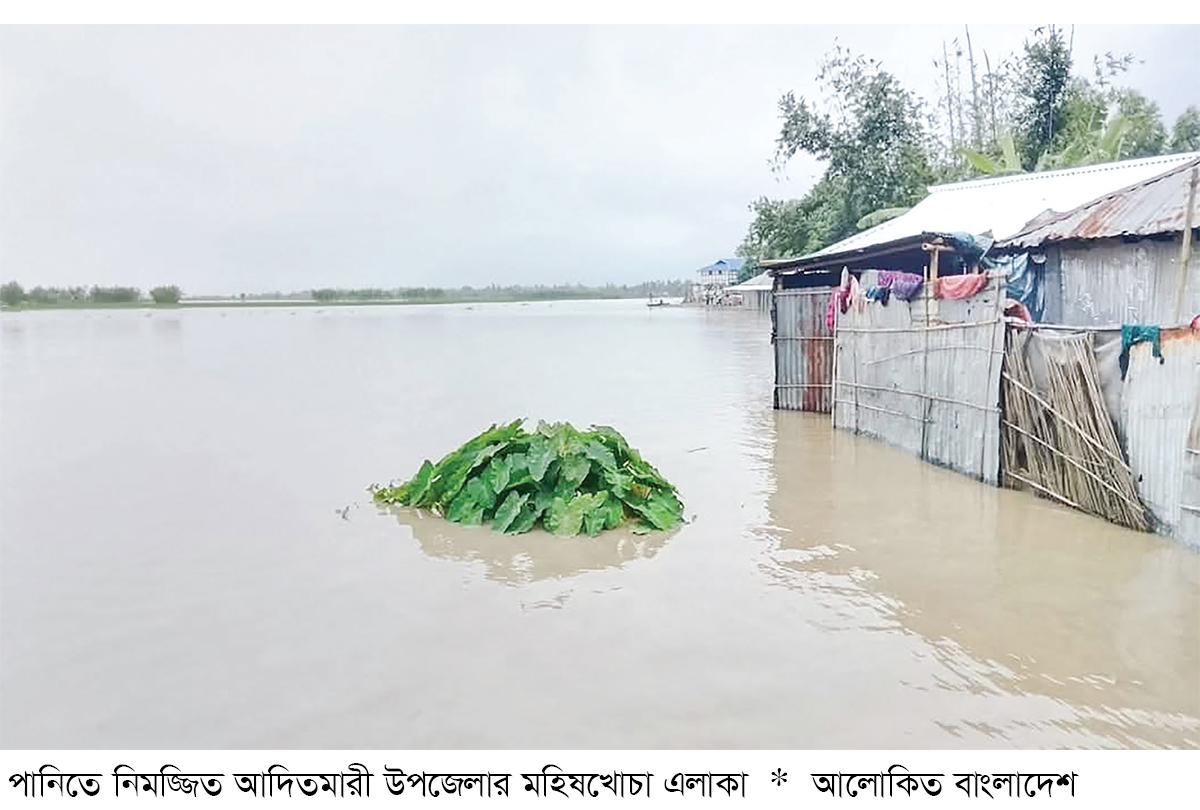 আদিতমারী উপজেলার মহিষখোচা এলাকার ভুক্তভোগীরা জানান, বাড়ির উঠানে কোমর পানি। রাতে ঘুমাতে পারিনি কেউ। চারদিকে শুধু পানি। আমন ধান ও সব ফসল ডুবে গেছে, পুকুরের মাছ ভেসে গেছে। লালমনিরহাট পানি উন্নয়ন বোর্ডের নির্বাহী প্রকৌশলী সুনিল কুমার বলেন, ভারী বৃষ্টিপাত ও উজানের ঢলের কারণে তিস্তার পানি বেড়ে গত রোববার রাতে ডালিয়া পয়েন্টে বিপৎসীমার ২৯ সেন্টিমিটার ওপরে প্রবাহিত হলেও সকালে তা কমে গেছে। বৃষ্টির পানি থাকায় বন্যার পানি নামতে সময় লাগছে। তবে উজানের চাপ কমে যাওয়ায় পরিস্থিতির উন্নতি ঘটতে পারে। পরিস্থিতি আমরা নিবিড়ভাবে পর্যবেক্ষণ করছি।